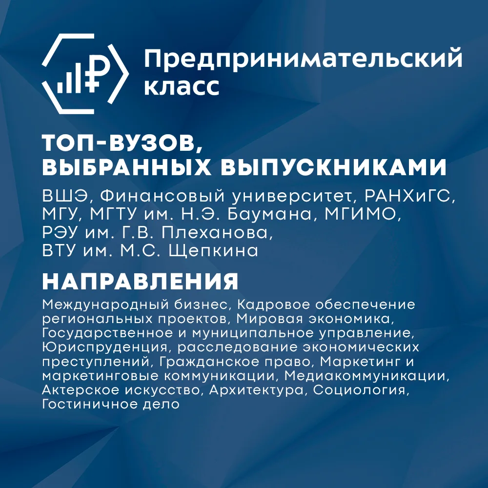 ✅ На какие направления в вузы чаще всего поступают москвичи?