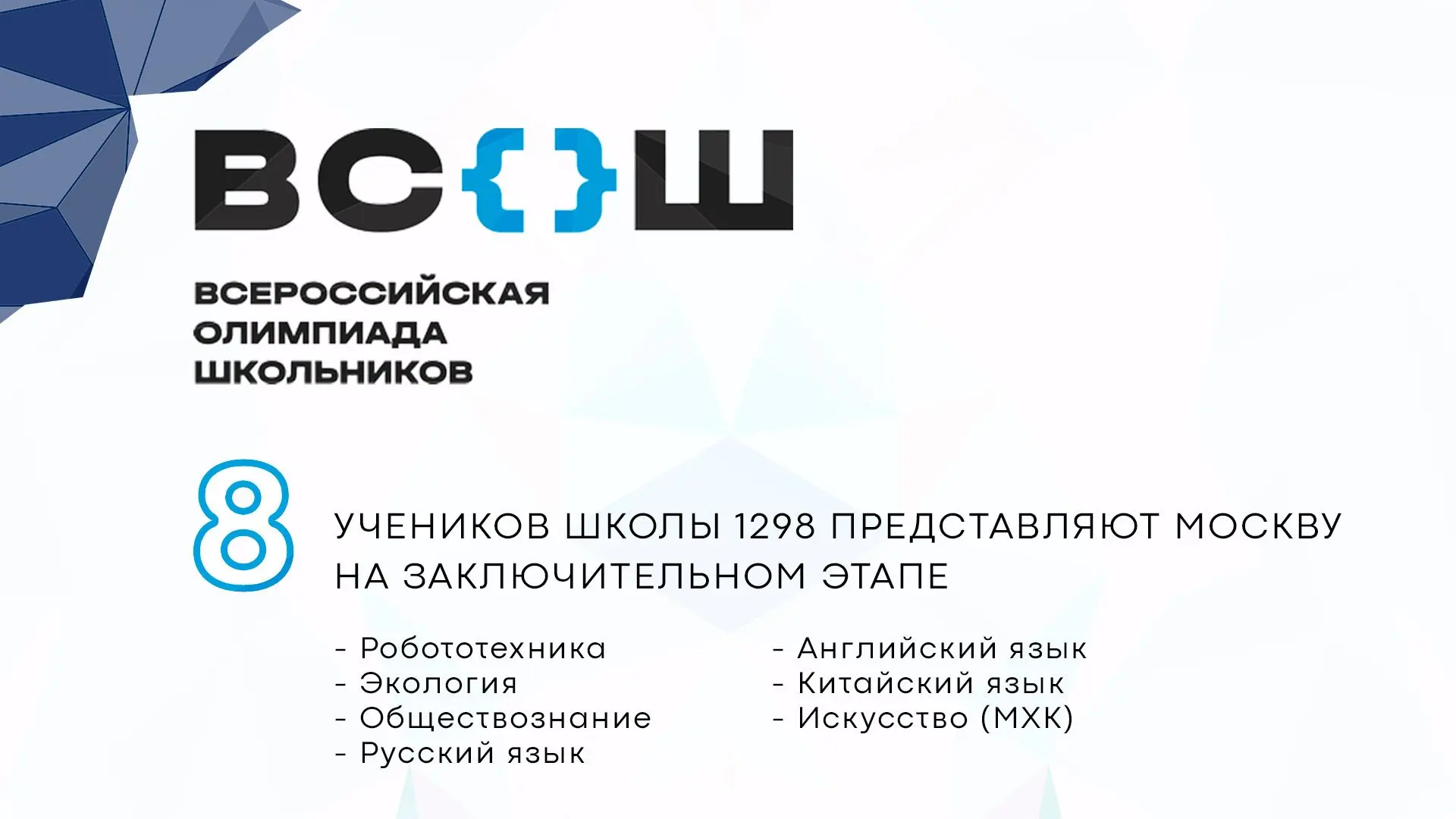 Парад победителей — ключевое мероприятие школы во славу каждого достижения, что мы смогли реализовать за время учёбы. На церемонии награждения мы чествуем победителей и призёров интеллектуальных, спортивных и творческих конкурсов Москвы и России — поздравляем учеников и сотрудников с результатами упорного труда, самоотдачи и вовлеченности в жизнь Школы 1298 «Профиль Куркино».
