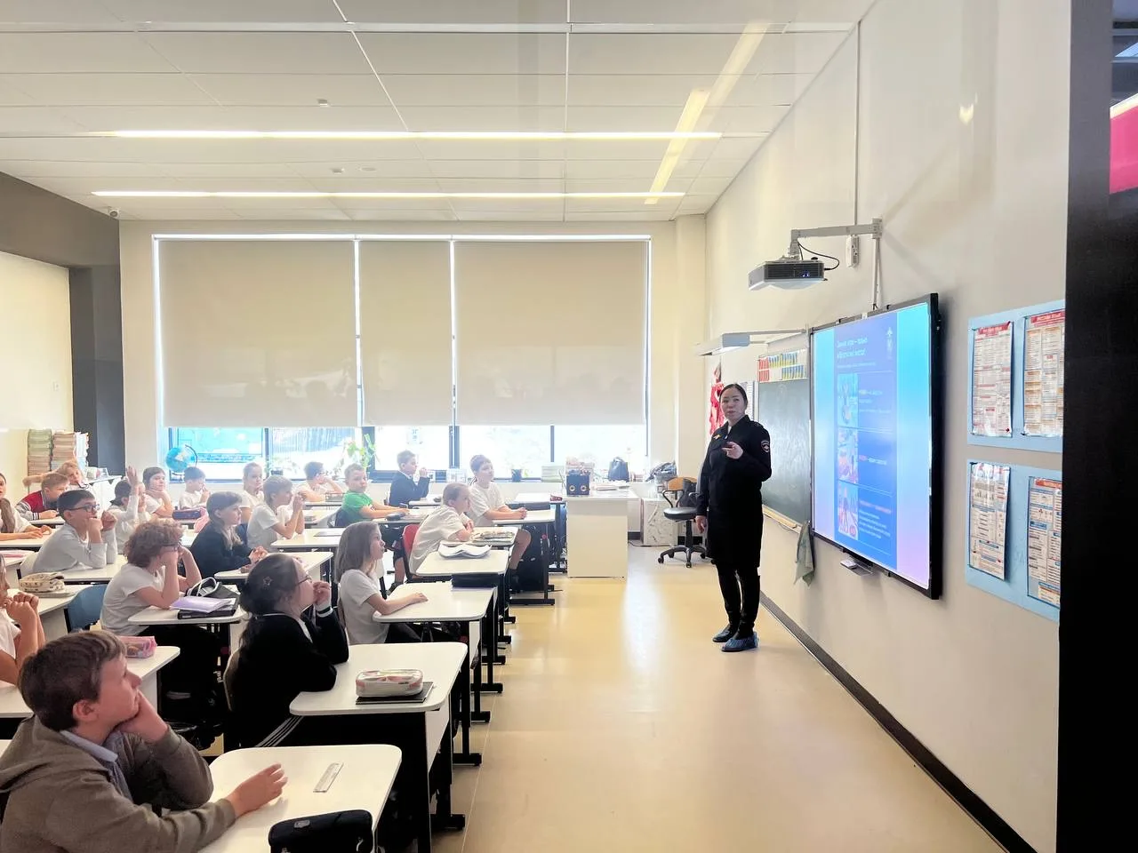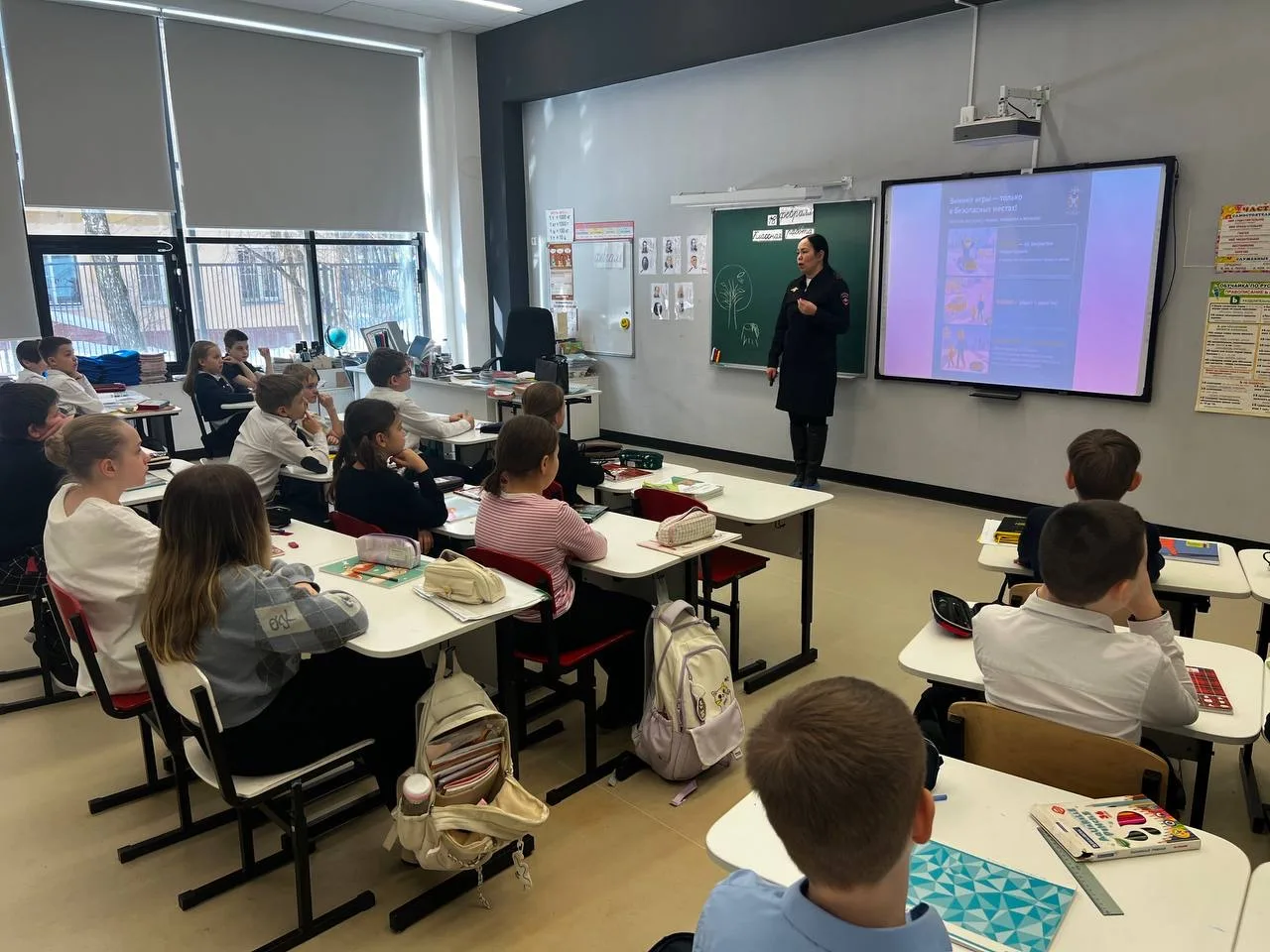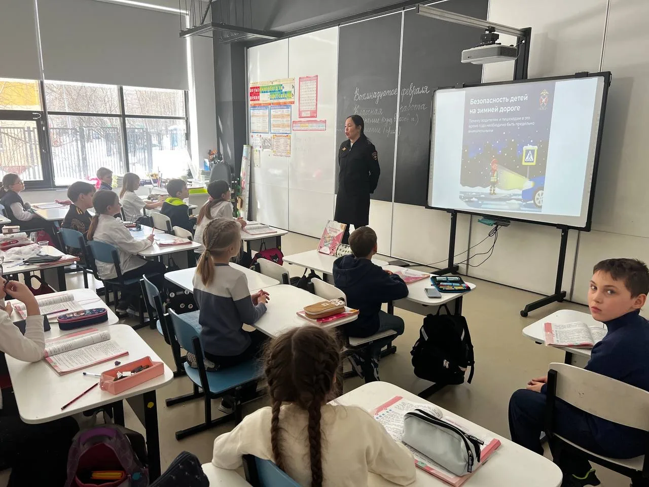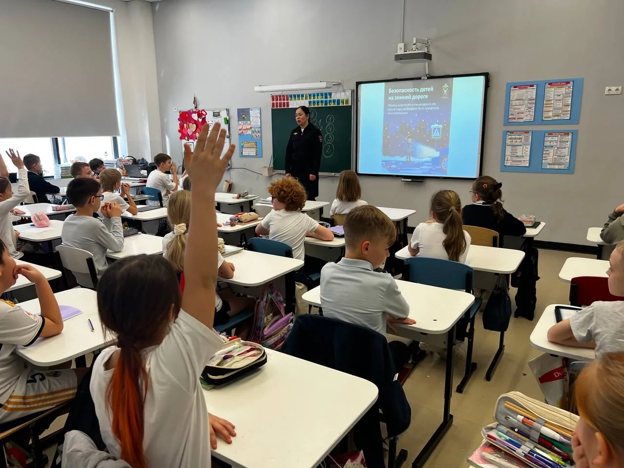 👉 Она подробно разобрала с учениками основные правила поведения на дороге в холодное время года. Особое внимание было уделено безопасности в условиях снегопада, гололеда и сокращенного светового дня. Инспектор объяснила, как правильно переходить дорогу, почему важно носить световозвращающие элементы на одежде и как избежать типичных опасных ситуаций
