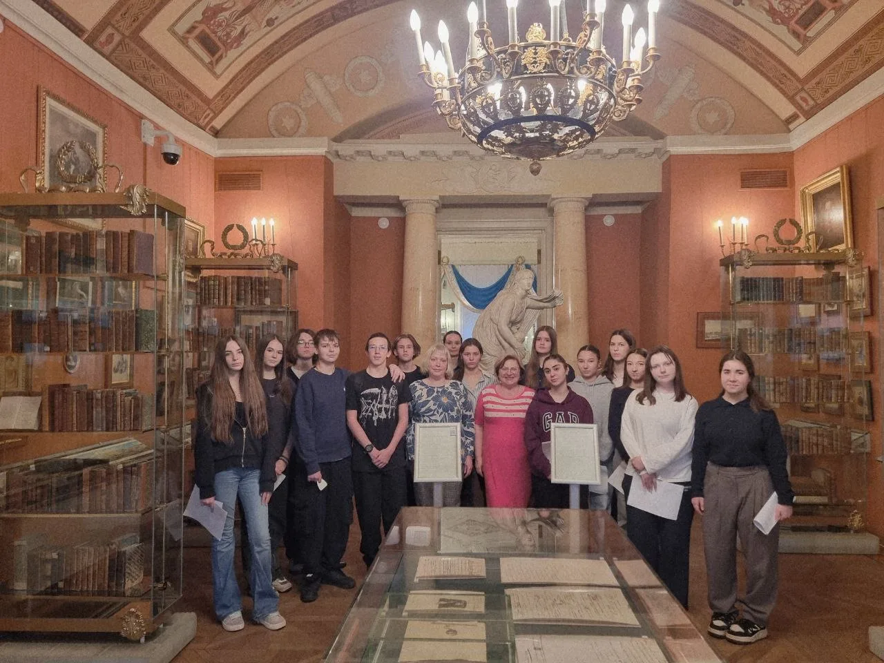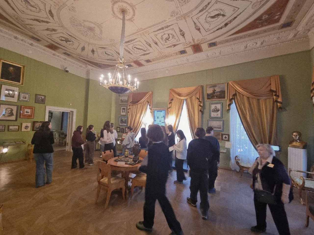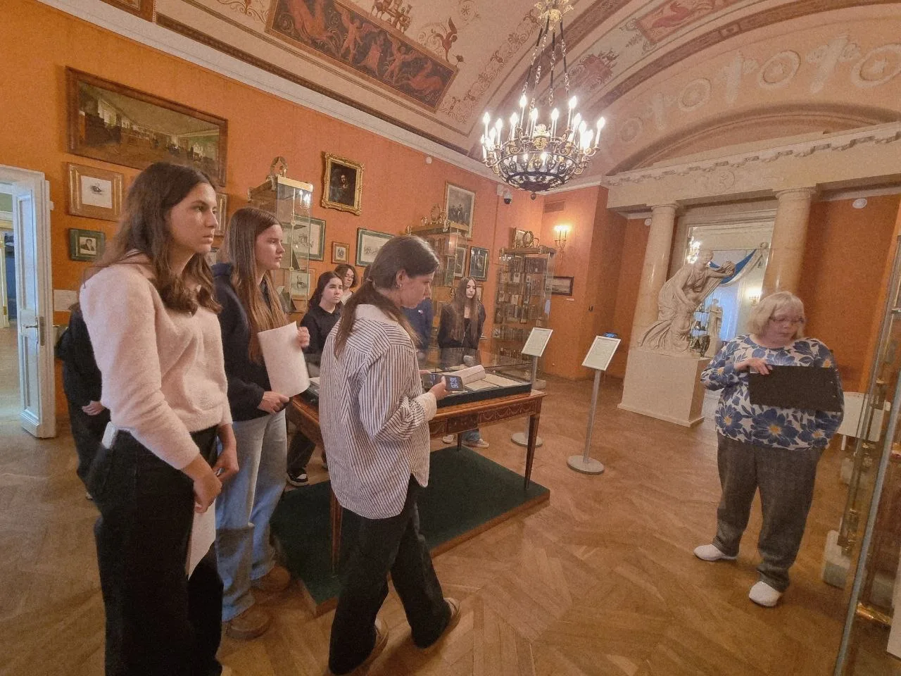 📌 Во время экскурсии школьники увидели выдающиеся произведения русского искусства. Среди них — парадные портреты XVIII века, портрет А.С. Пушкина, «Всадница» Карла Брюллова, монументальное полотно Александра Иванова «Явление Христа народу», а также пейзажи Ивана Шишкина, Ивана Айвазовского и Архипа Куинджи