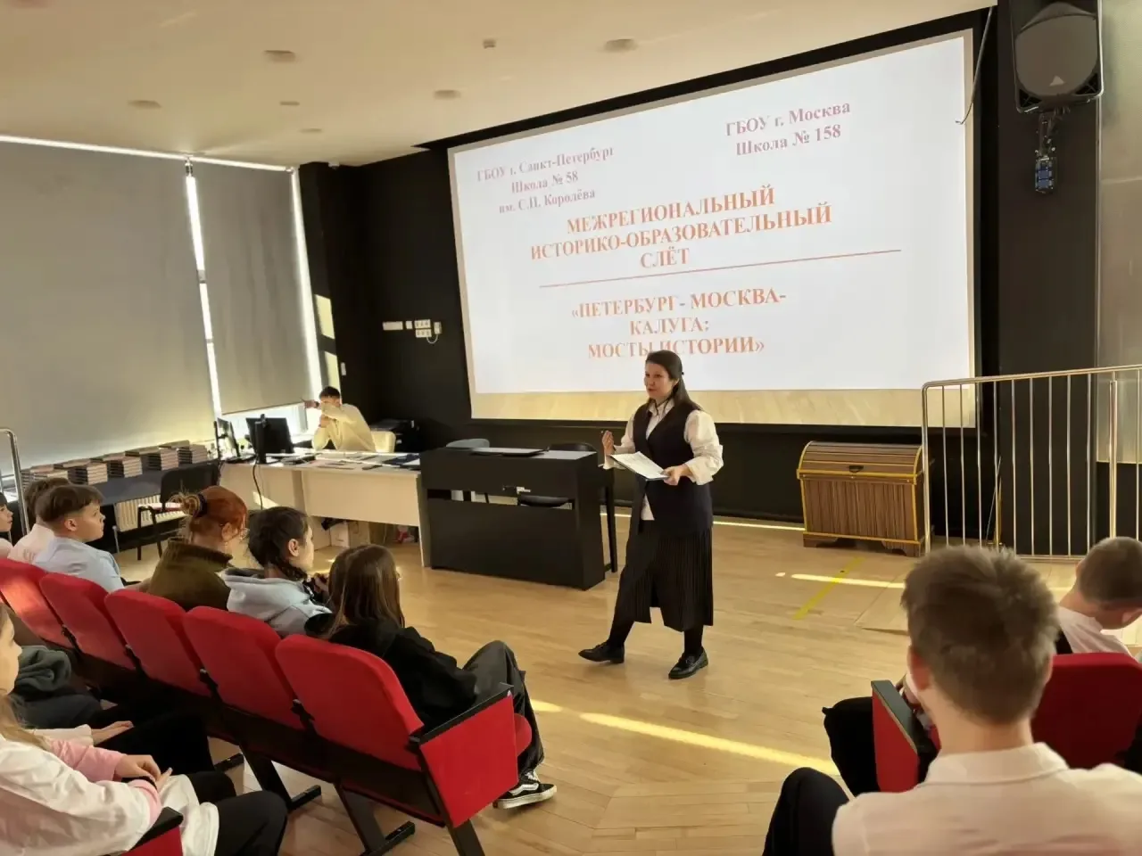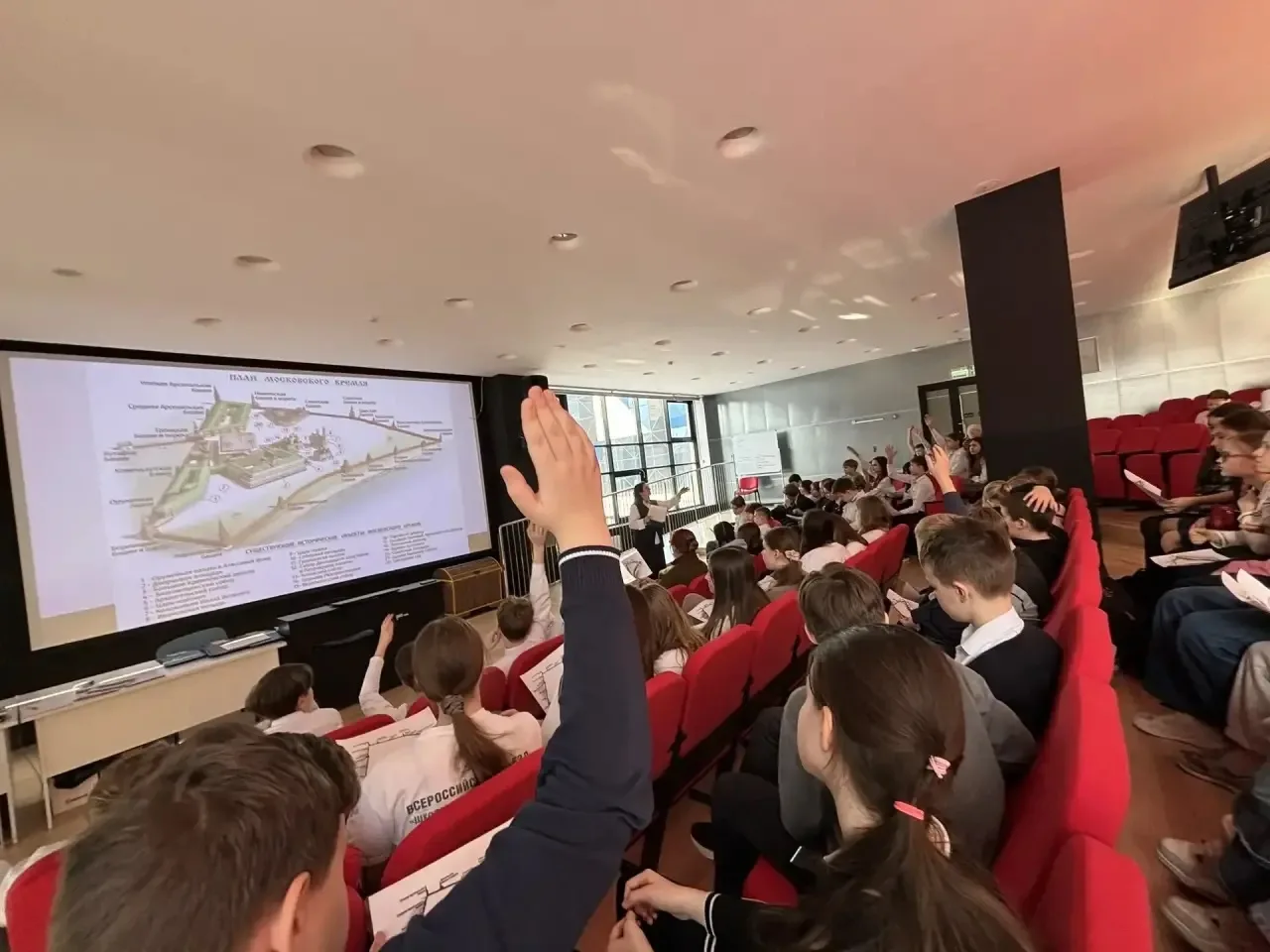 📍 Наши гости, вместе с учениками 5 и 6 классов, приняли участие в проекте «Урок в московской школе», посетив интерактивный урок истории, посвященный московскому Кремлю. От первого, белокаменного, построенного в 1366–1367 годах при князе Дмитрии Донском и до гордости всех россиян, Кремля сегодняшнего — вот такой путь проделали ребята за 45 минут