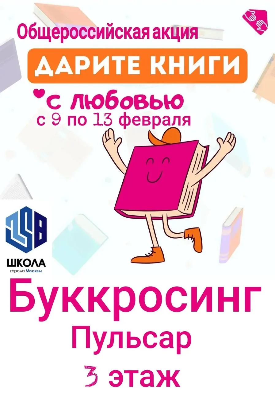 ✅ С 9 по 13 февраля наша школа присоединяется к общероссийской акции «Дарите книги с любовью». В рамках акции вас ждут увлекательные тематические события: