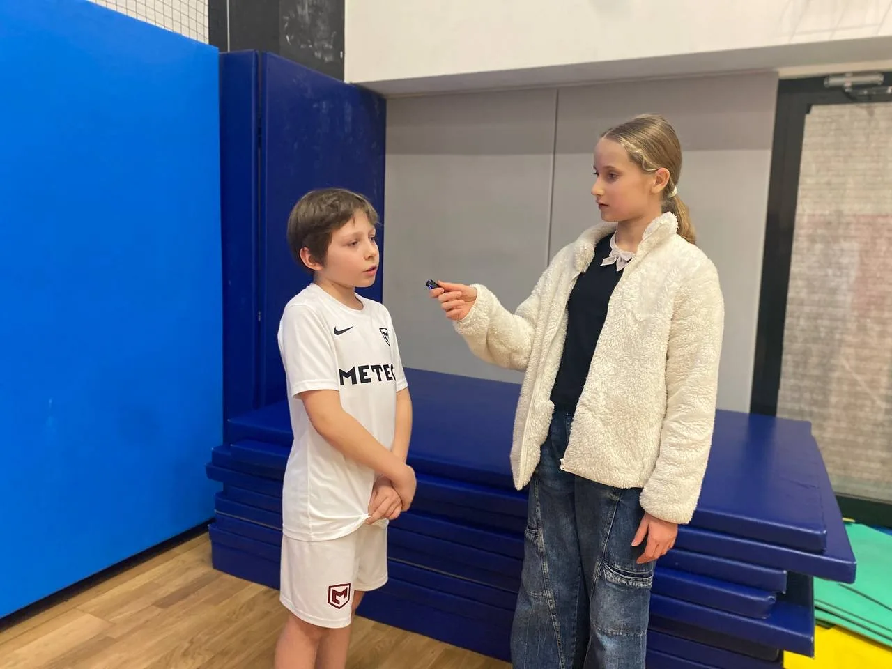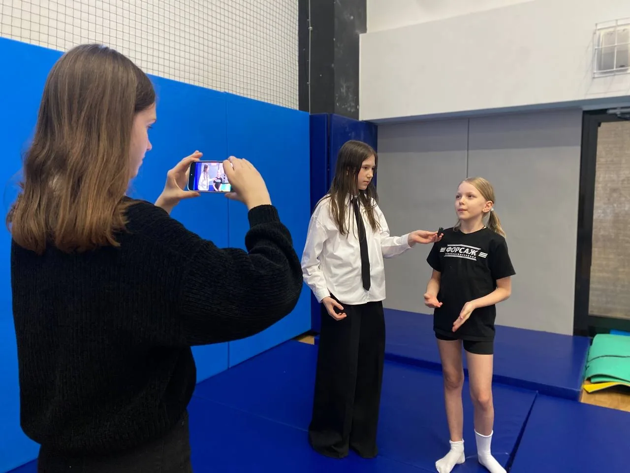 ✅ Ребята сняли свои первые интервью в спортивных секциях школы — в студии чирлидинга «Конфетти» и в футбольной группе «Метеор». Это была полноценная съемка репортажа с места событий