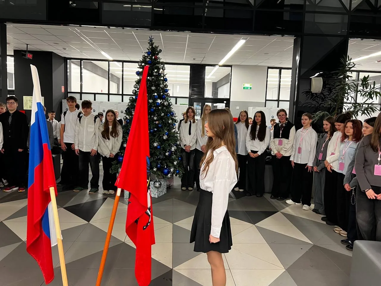 🎄 Новогодние каникулы промчались как один миг и мы начинаем новую главу школьной жизни торжественно — с церемонии поднятия государственного флага под гимн Российской Федерации!