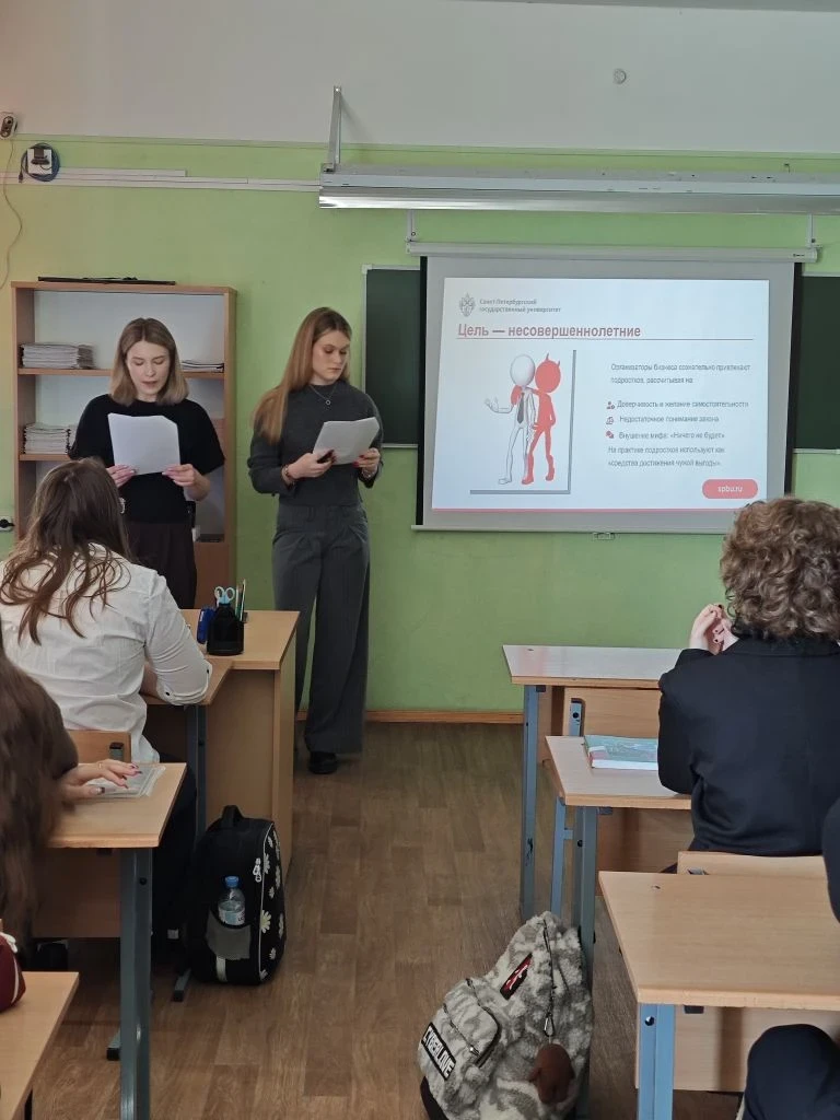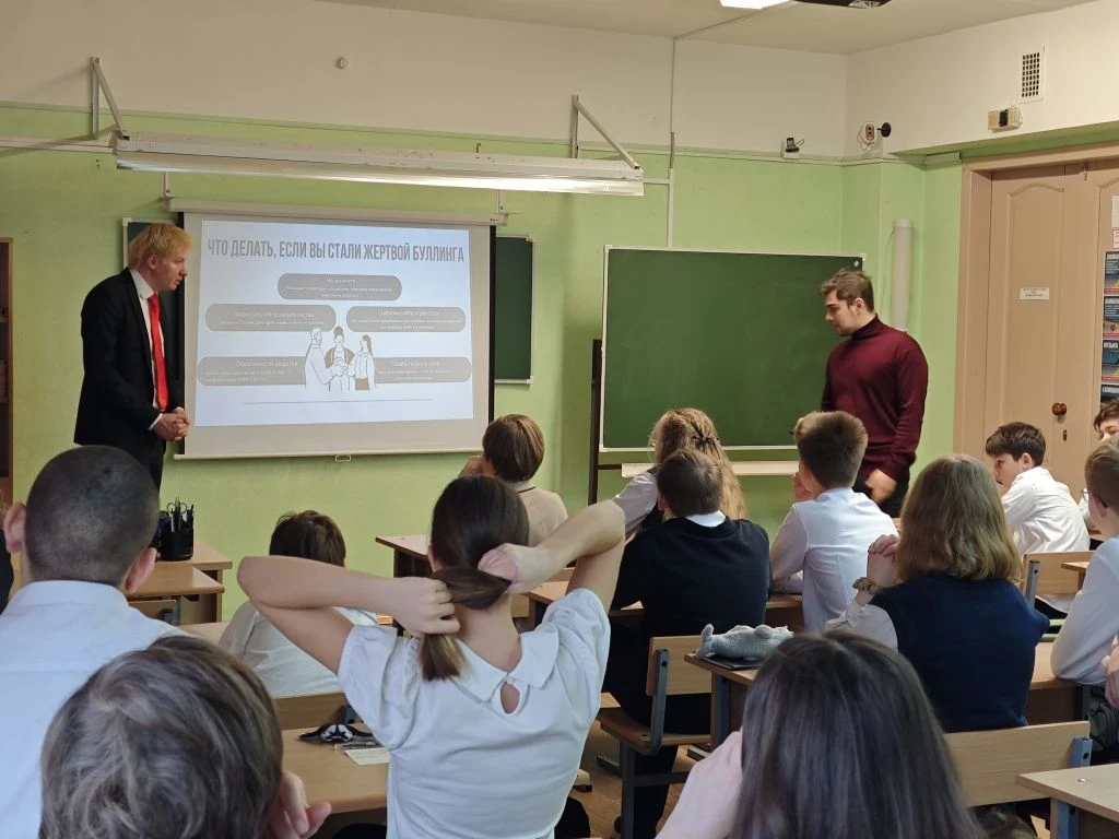 16 марта ребята 6И класса встретились со студентами юридического факультета СПбГУ. В ходе интерактивной беседы молодые люди затронули актуальную тематику, связанную с буллингом. Сложная во всех смыслах тема была достаточно доступно и интересно представлена школьникам. Ребята заинтересованно слушали и активно участвовали в разговоре, когда студенты предложили им небольшие задачи и тестовые задания. Подобные занятия направлены на формирование негативного отношения к этому явлению и на развитие навыков ответственного и безопасного поведения в ситуации травли.
