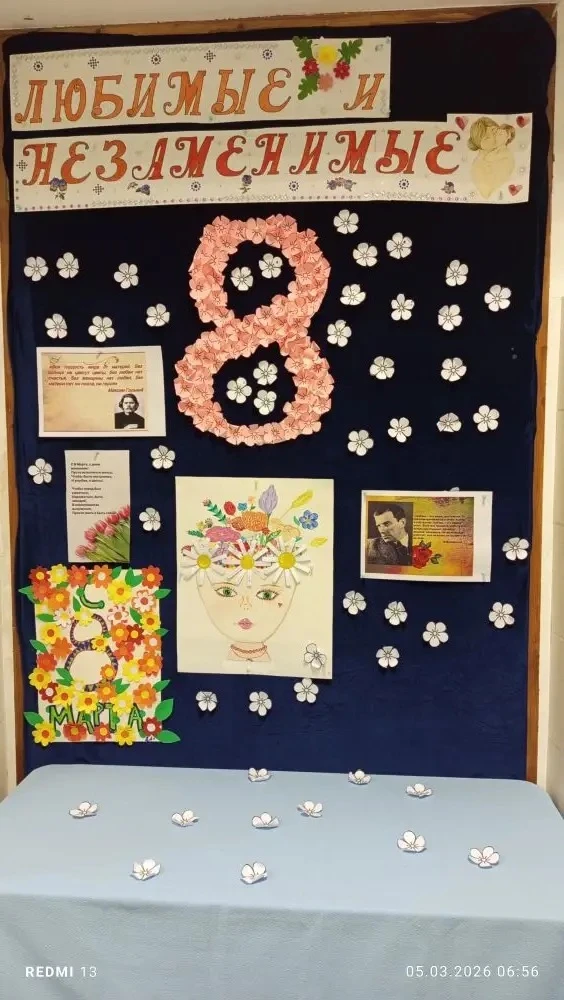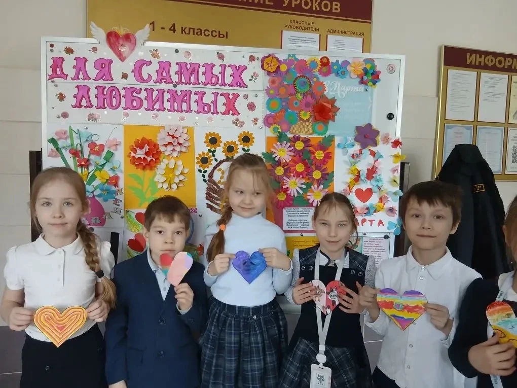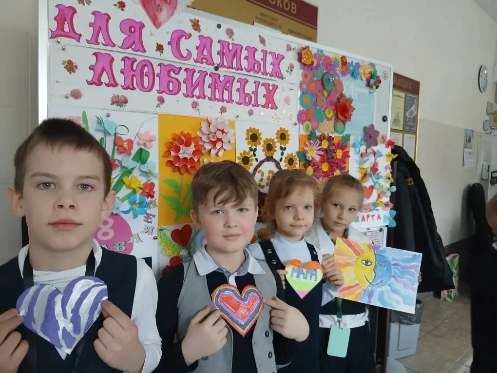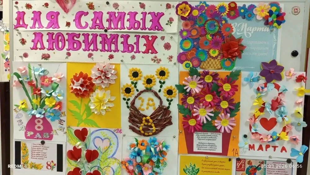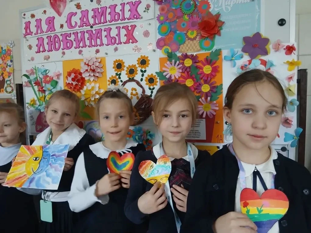В вестибюле начальной школы открылась выставка под названием «Для самых любимых». Маленькие гимназисты представили коллективные творческие работы-поздравления, посвящённые Международному женскому дню 8 Марта.