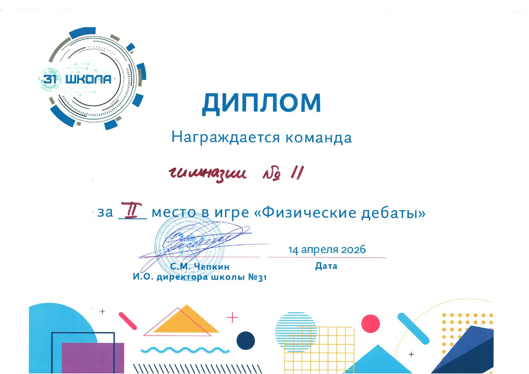 14 апреля в рамках городской недели физики на базе ГБОУ СОШ № 31 прошла интеллектуальная игра «Физические дебаты», где наша команда 10Б класса блестяще проявила себя!
