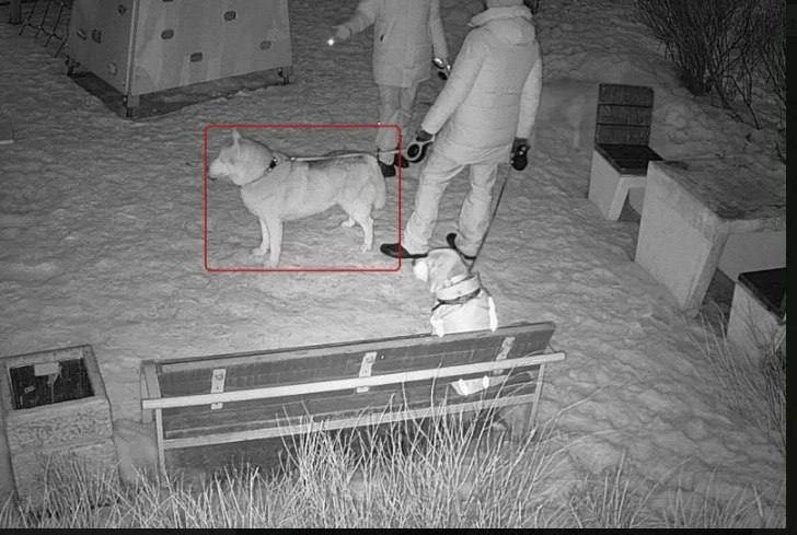 📸 Городская камера на проспекте Культуры на днях зафиксировала необычный эпизод – сидящую на лавочке собаку. В данном случае нейросеть детектировала одну собаку на земле. Даже ИИ не мог предположить, что другая собака будет дисциплинированно сидеть в это время рядом на лавочке.