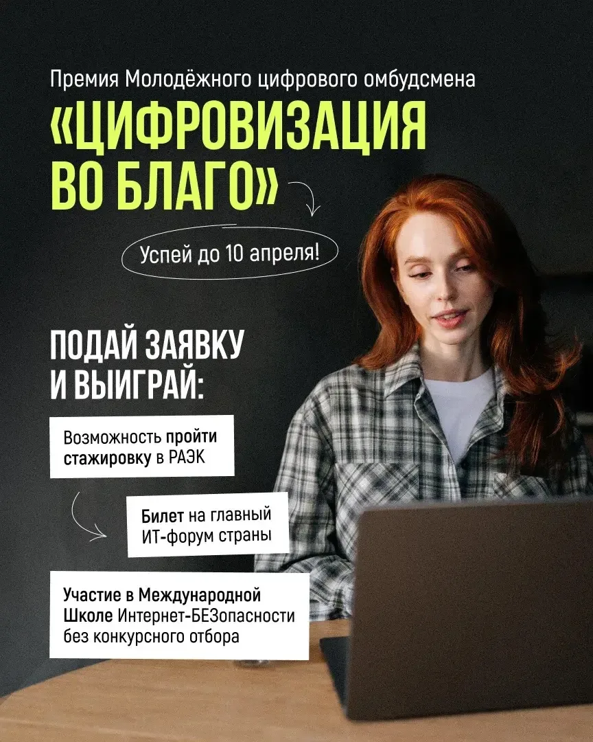 🟢 Твой цифровой проект может выстрелить на всю страну — успевай подать заявку до 10 апреля: vk.cc/cVxyp7.