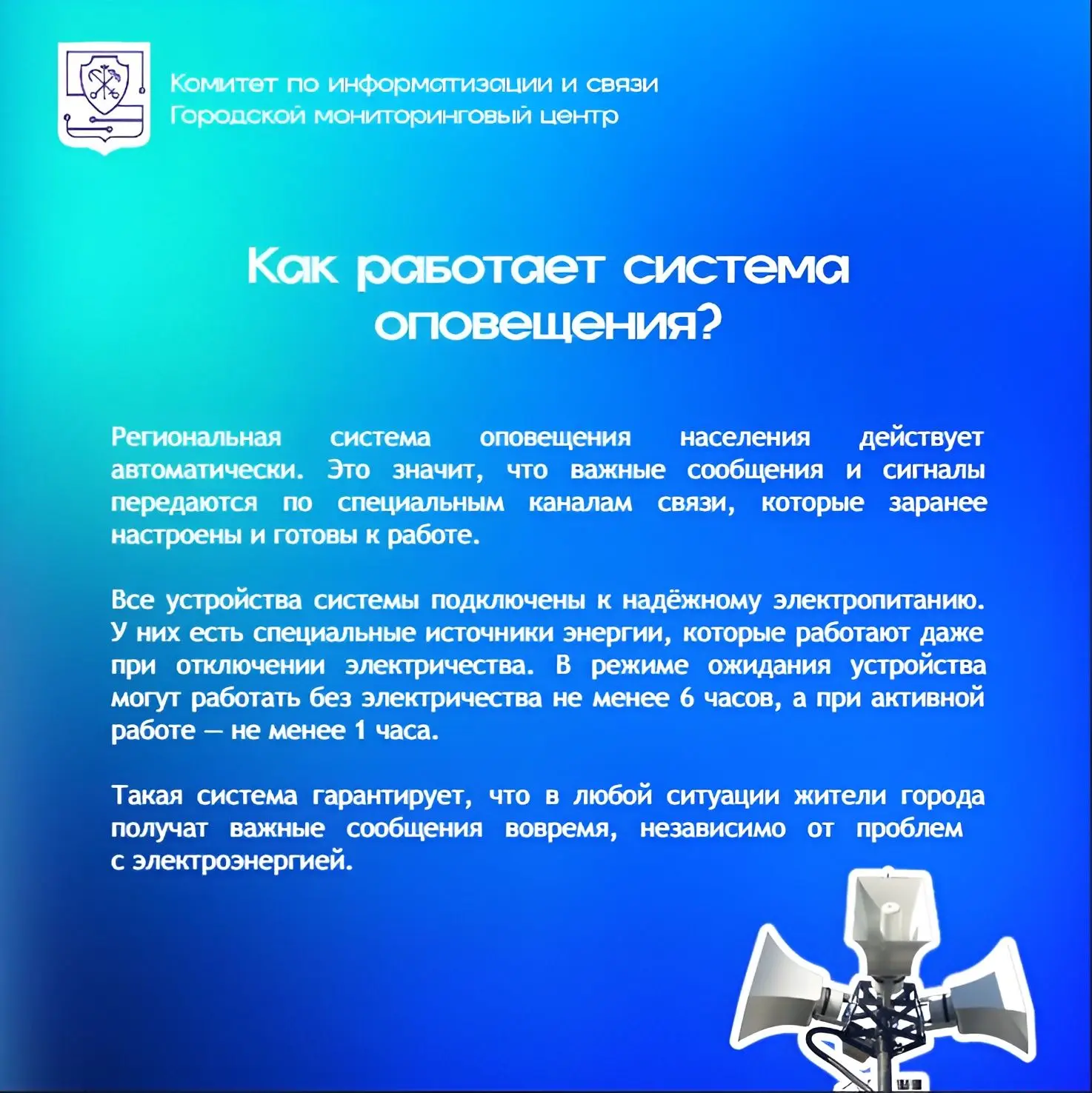 🎯По результатам анализа всех проведенных мероприятий Комитета по информатизации и связи Санкт-Петербурга определит приоритетные направления дальнейшего развития системы оповещения.