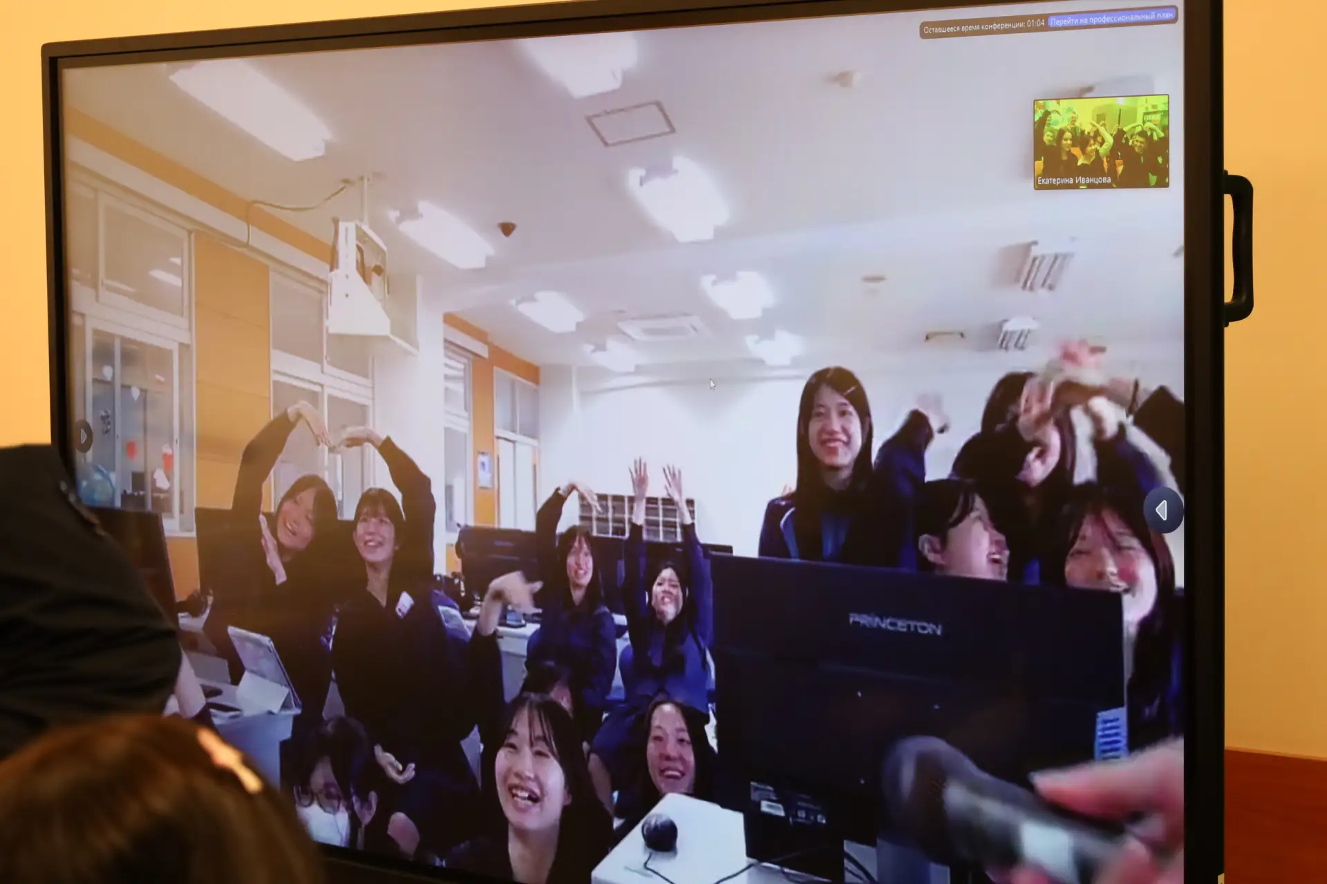 Во время видеоконференции школьники обменялись приветствиями, рассказали о традициях в России и Японии, о своих родных городах, о школьных буднях и увлечениях после уроков, поделились планами на ближайшие каникулы.
