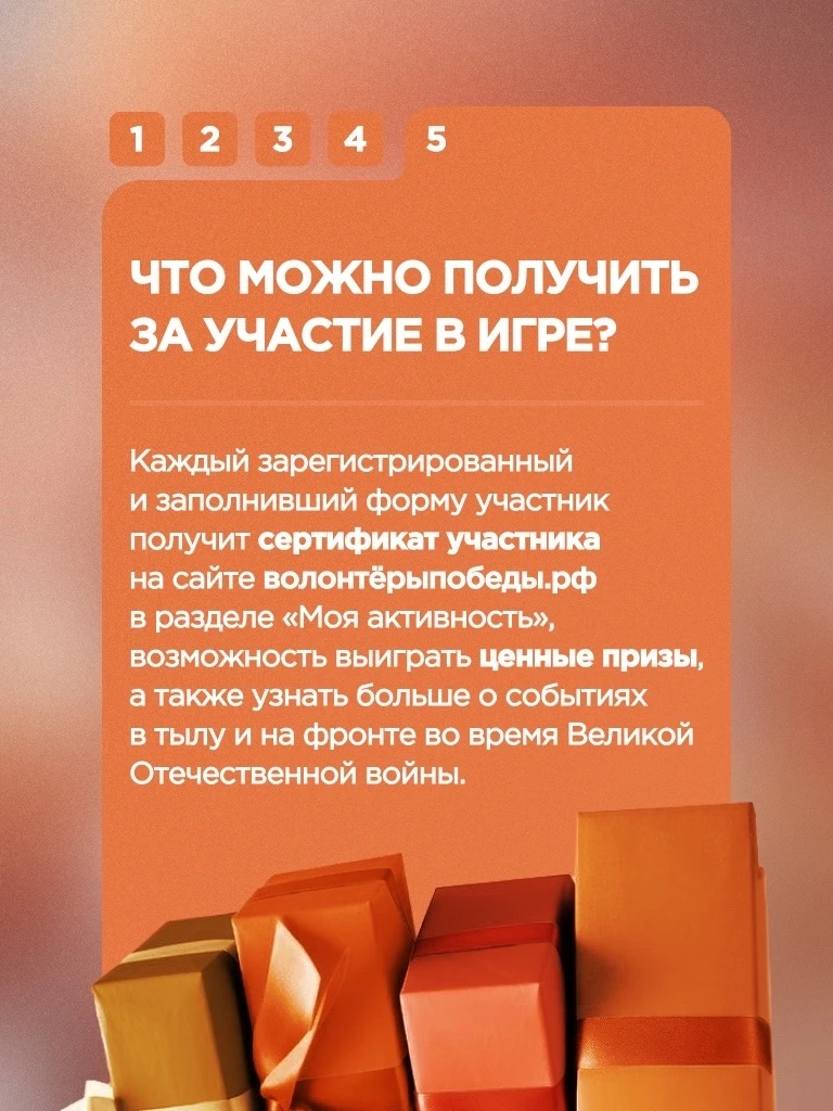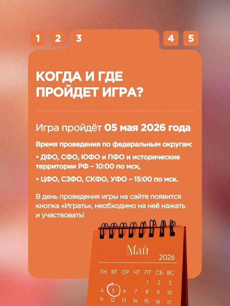 📌 5 мая состоится интеллектуальное соревнование, где каждый сможет ответить на вопросы о подвиге народа, единстве фронта и тыла, а также открыть для себя новые исторические факты.