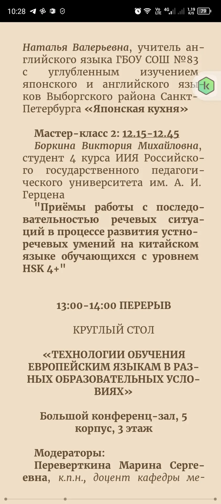«ПРОФЕССИОНАЛЬНЫЙ ДИАЛОГ», в рамках которого учителя японского языка нашей школы представили целый ряд разнообразных выступлений. Н.Ю.Саватюгина и Н.В.Медведева продемонстрировали мастер-класс "Японская кухня", А.П.Воробьев сделал доклад на тему "Технологии обучения европейским и восточным языкам", а методист А.Ю.Старикова провела мастер-класс по японской каллиграфии и выступила с докладом "Формат обучения редким иностранным языкам".