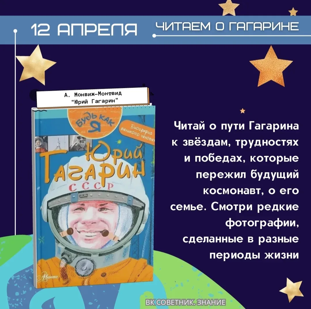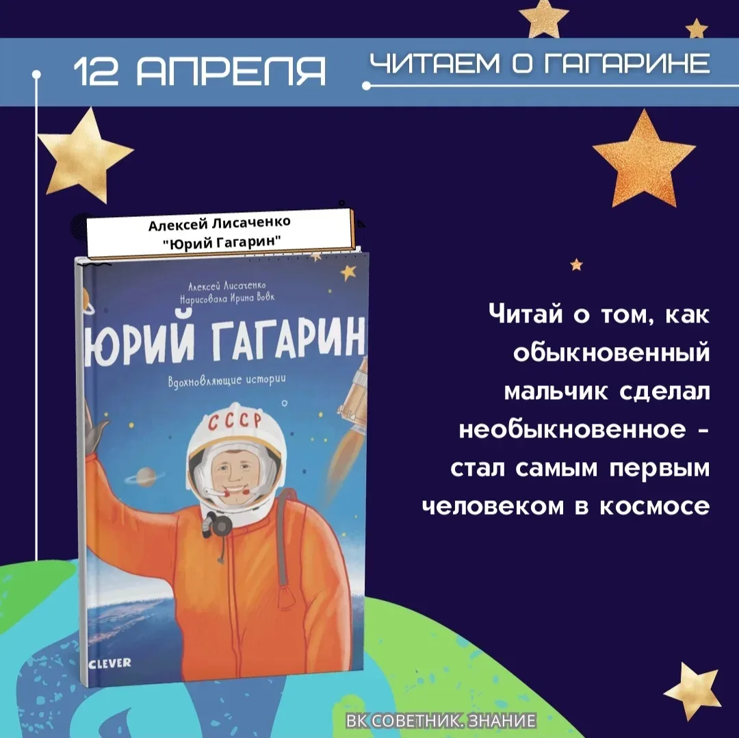 📚 В подборке собрали книги для детей о Юрии Алексеевиче Гагарине - первом человеке в мировой истории, совершившим полёт в космическое пространство.