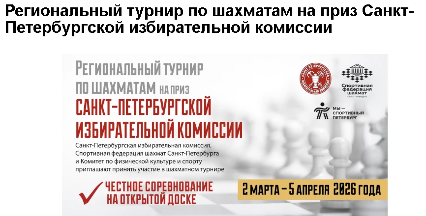 О региональном турнире по шахматам на приз Санкт-Петербургской избирательной комиссии