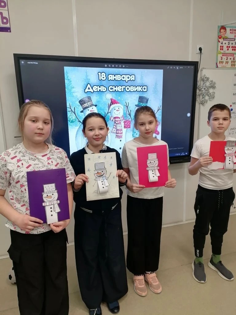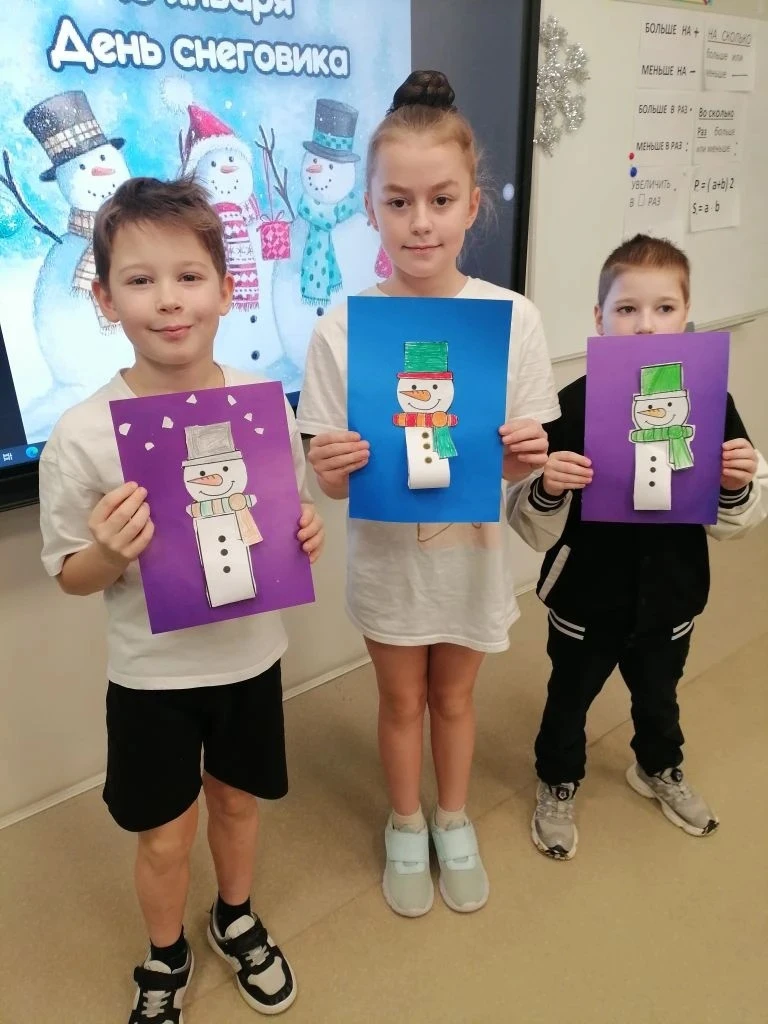3.4 класс провёл занятие, посвящённое 18 января – Всемирному дню снеговика ⛄. Ребята узнали, почему именно эта дата выбрана, познакомились с легендами и преданиями о снеговиках, а также о миниатюрных и гигантских снеговиках. В завершение занятия дети сами сделали снеговиков ❄️.