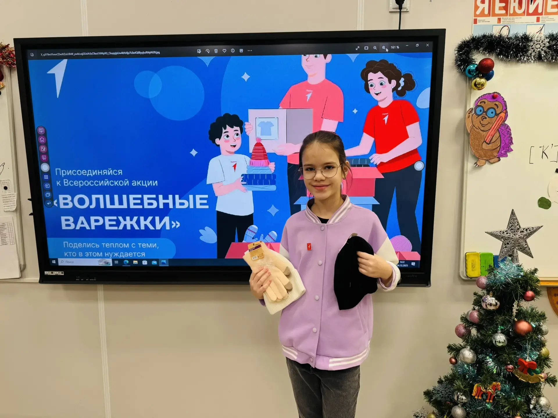 Родители, дети и педагоги активно участвовали во Всероссийской акции «Волшебные варежки» 🧤. Были собраны тёплые вещи для нуждающихся детей, а ученики написали поздравительные письма и добрые слова для ребят ❄️❤️.
