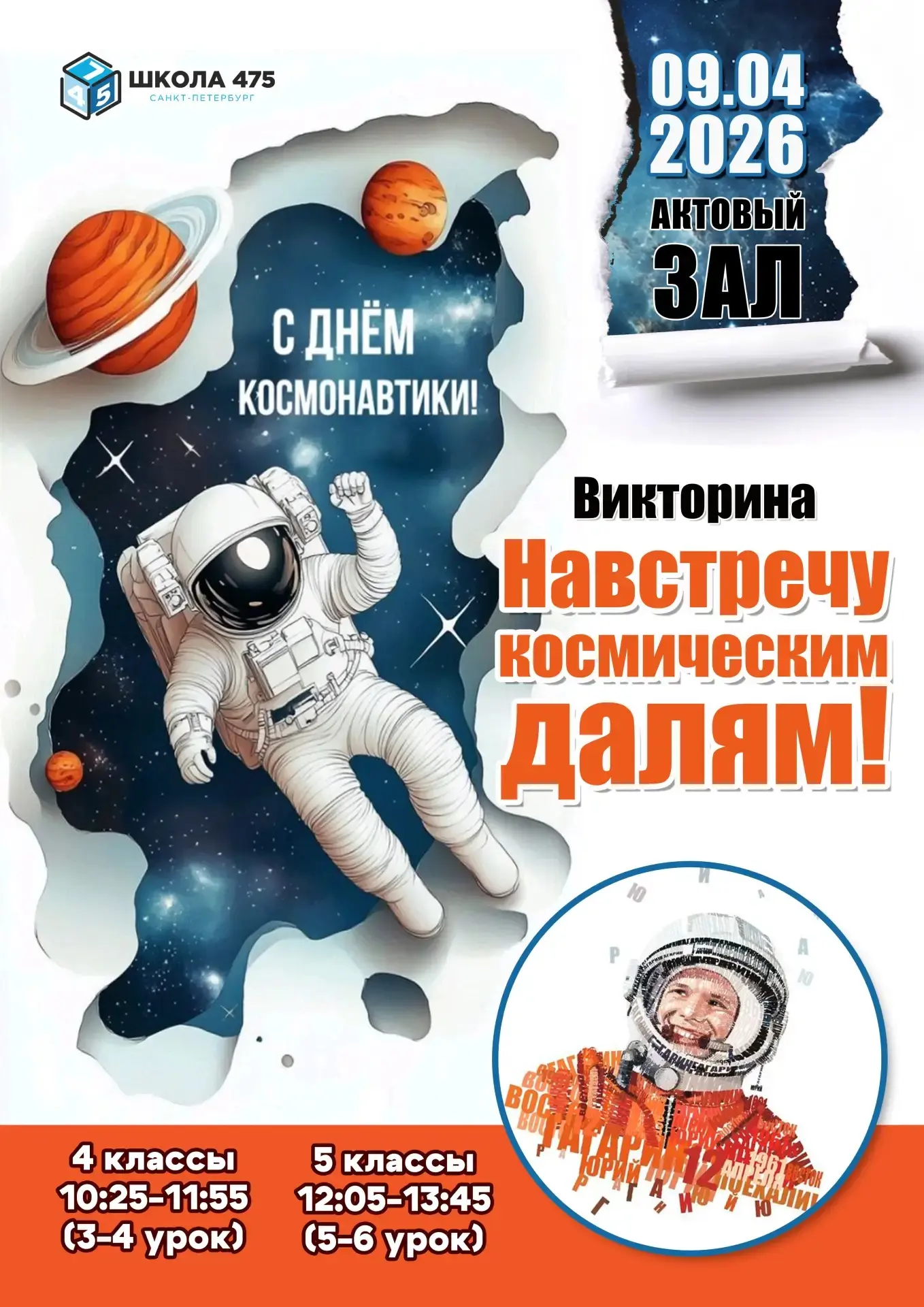 9 апреля 2026 состоится викторина " Навстречу космическим далям" для обучающихся 4 и 5 классов.