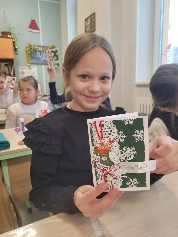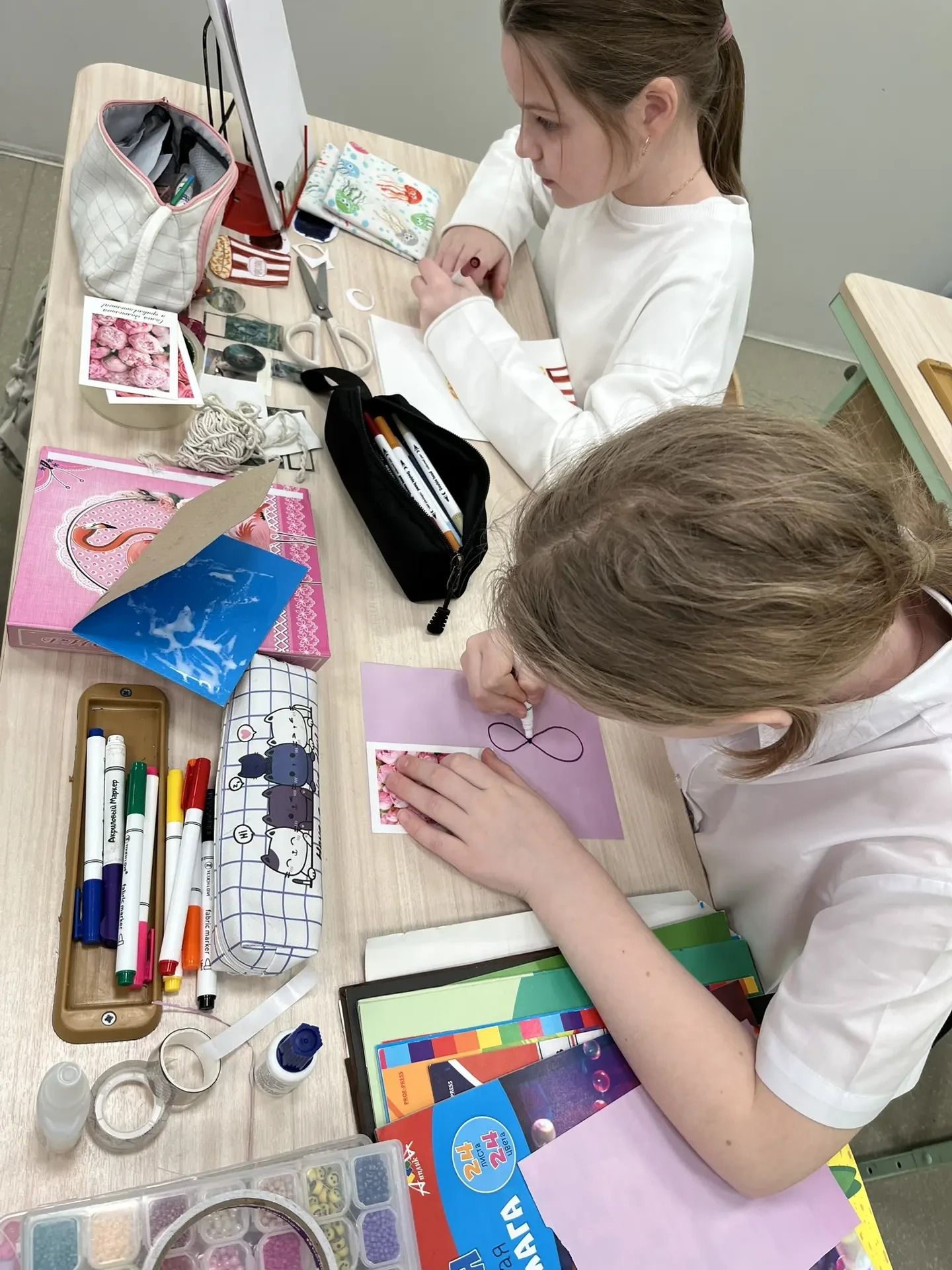 Прошёл мастер-класс по изготовлению открытки методом скрапбукинга ✂️🖌️. Работа была кропотливой, но результат превзошёл ожидания: у каждого получилась своя оригинальная открытка! Огромное спасибо Яне Алексеевне Пяткиной (родительница 2.5 класса) и родителям за предоставленные материалы.
