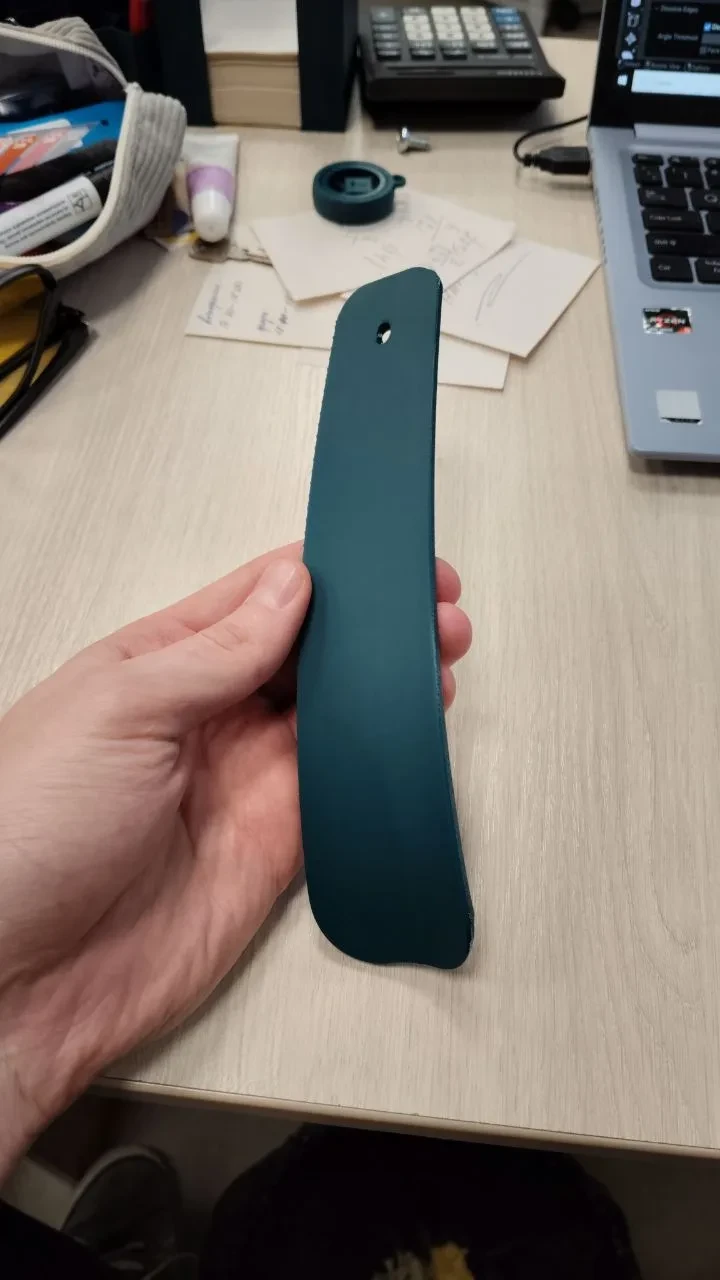 6.🥄 Ложка для обуви: технологии на страже комфорта. Спроектирована и напечатана функциональная замена утерянному инструменту.