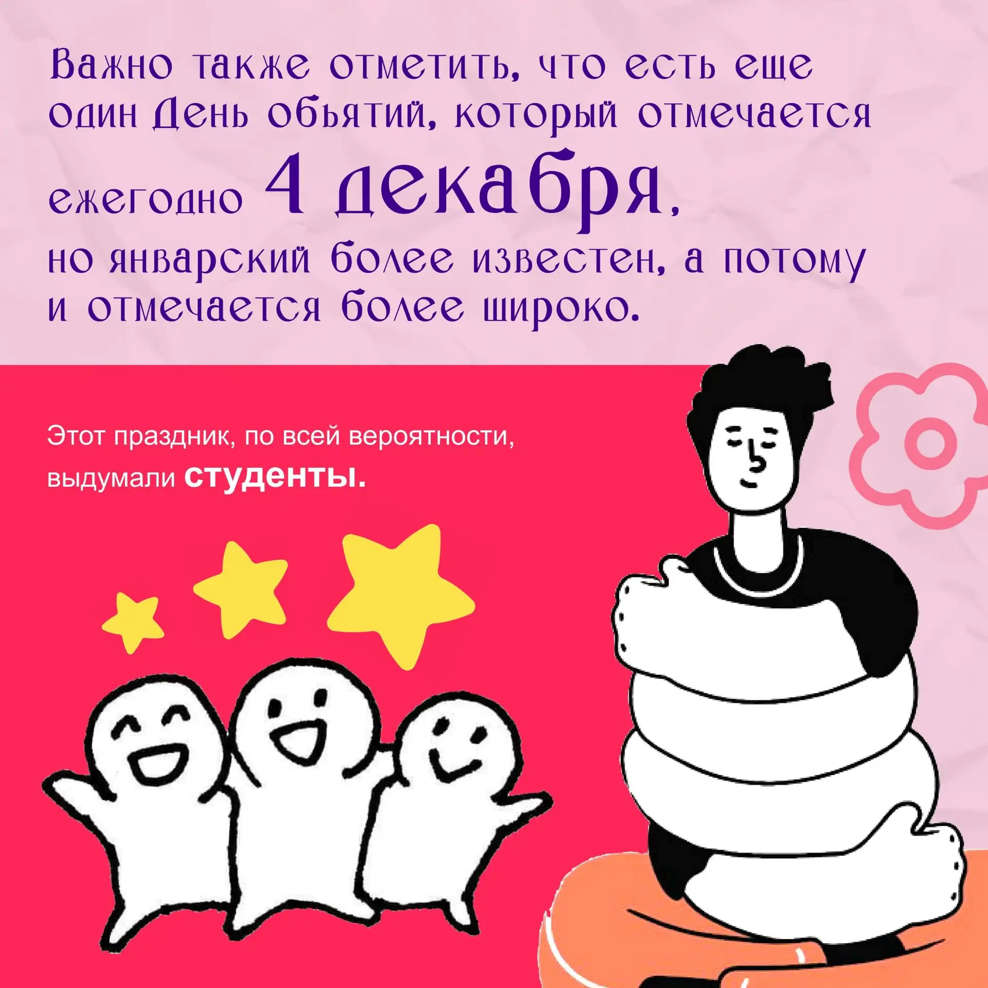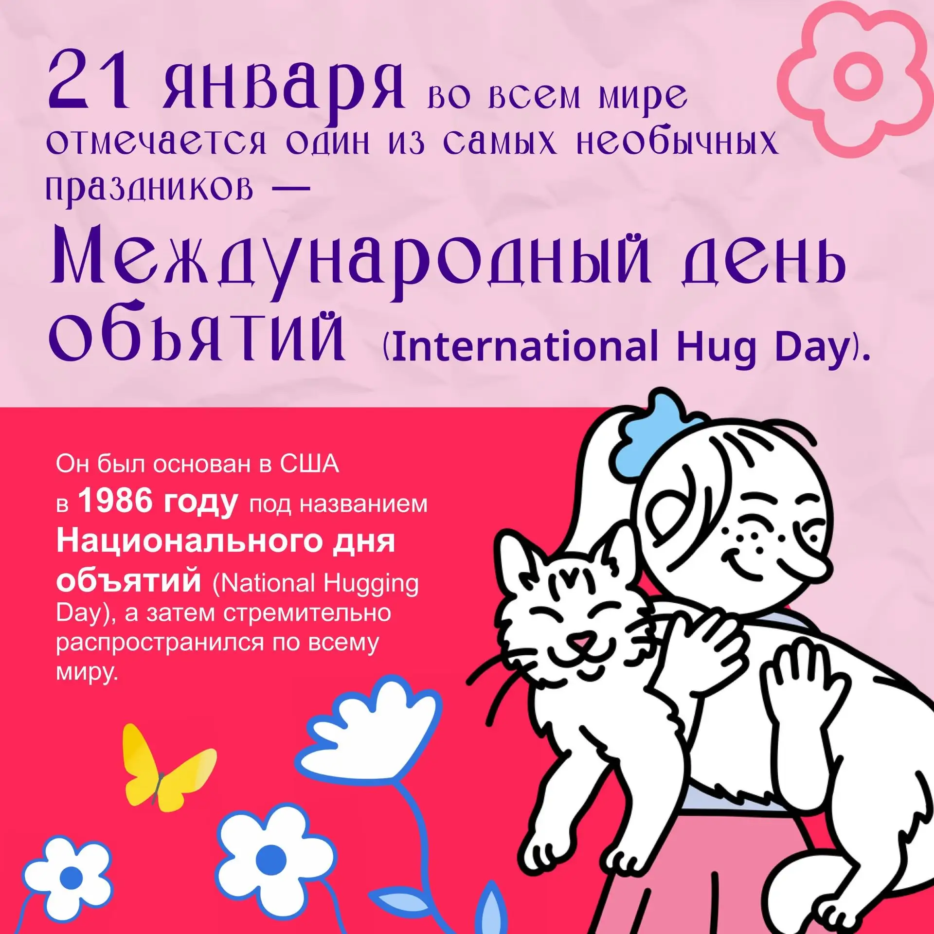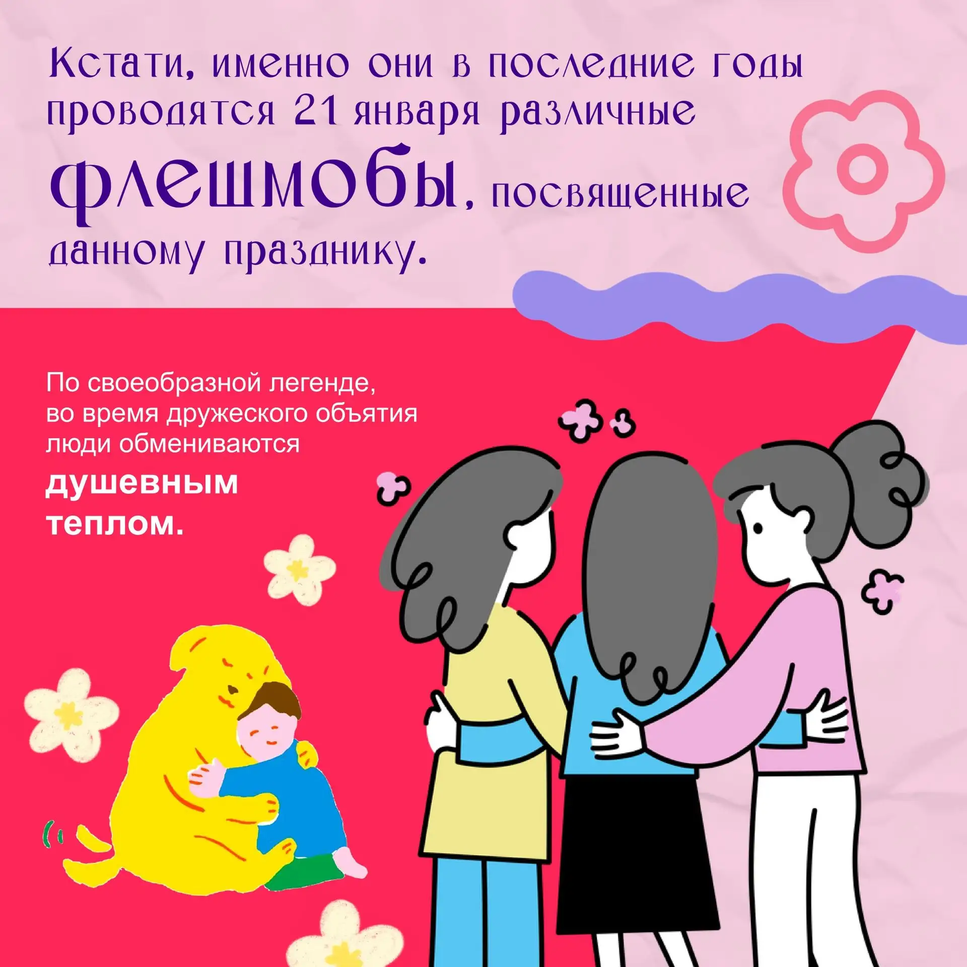 🎉СеСегодня мы отмечаем День объятий! В это холодное зимнее время давайте подарим друг другу немного тепла и уюта. Объятия — это не только способ показать свою заботу, но и отличный способ поднять настроение!