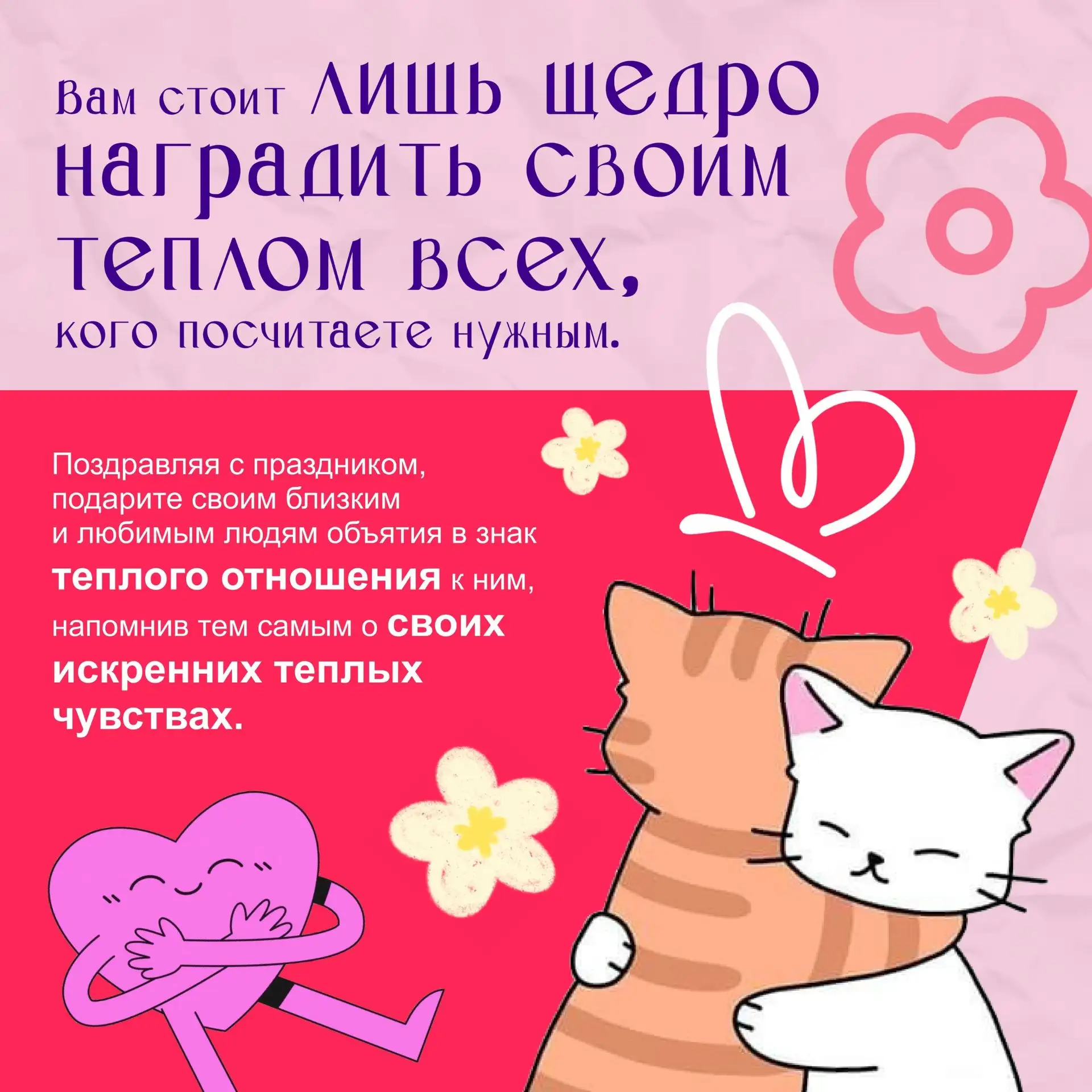 Давайте сделаем этот день особенным, наполнив его теплом и дружбой. Делитесь своими объятиями и хорошими эмоциями! 🙏