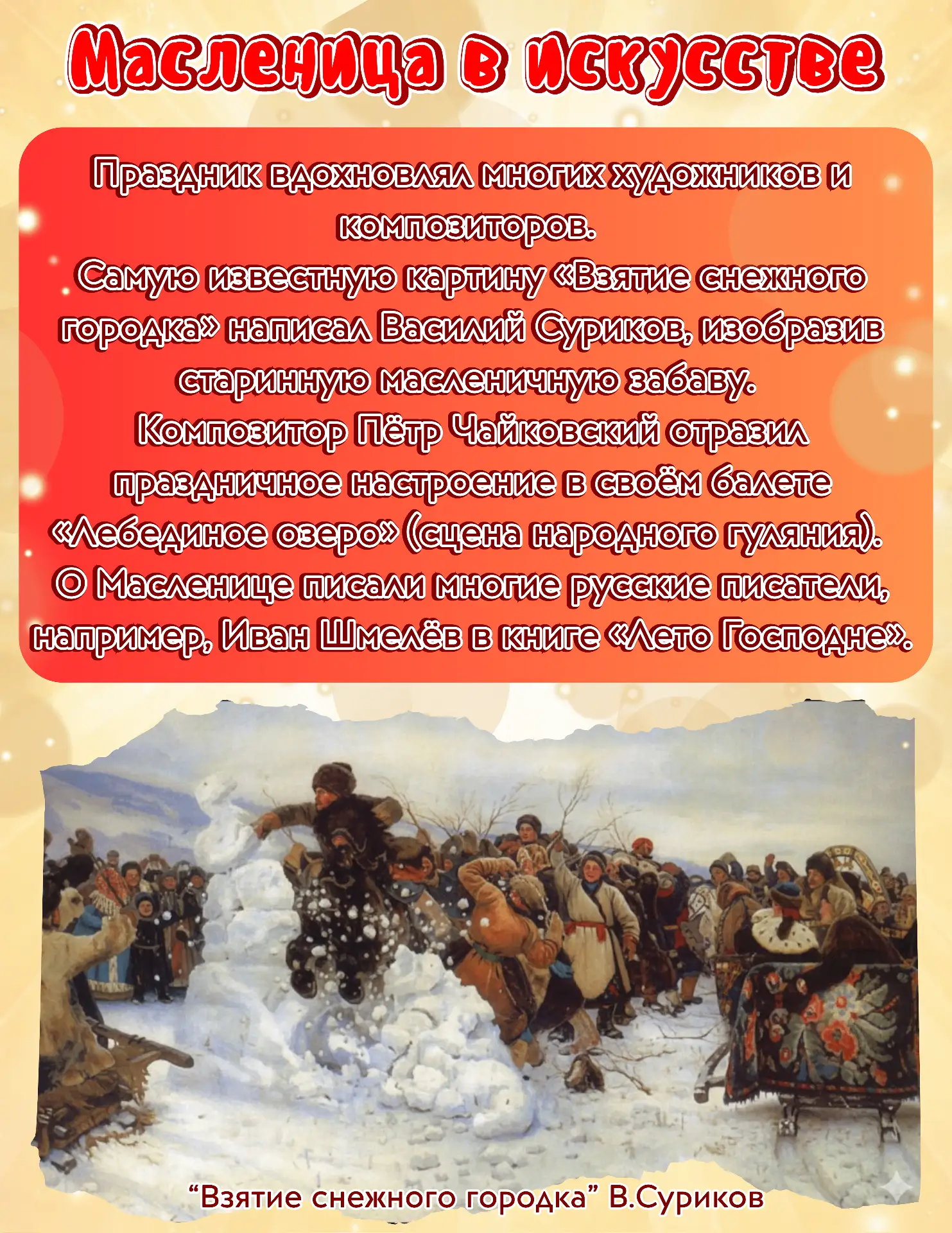 В эту пятницу,20 февраля, для начальной школы пройдёт уличный праздник, который станет настоящим событием и символом начала весны! Готовьте аксессуары и блины — ребят ждут веселые игры, песни и танцы!