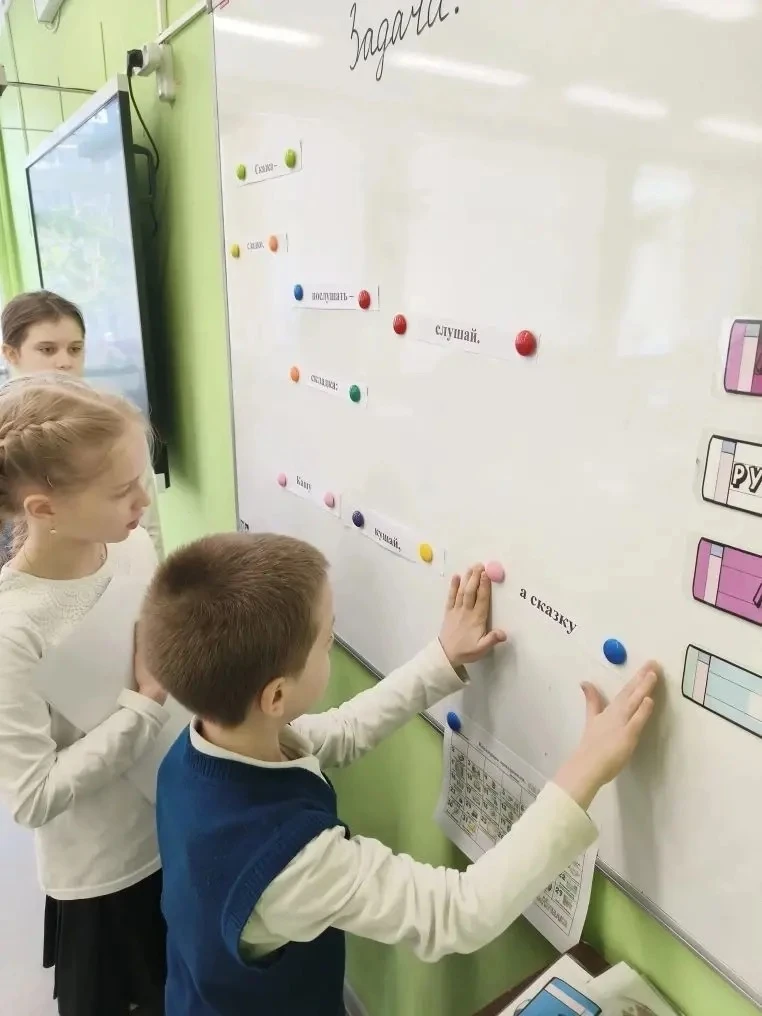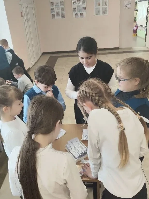 Ученики 3-х классов подготовили и провели мероприятие для ребят 1–2 классов: дети отгадывали загадки, собирали пазлы и составляли пословицы.