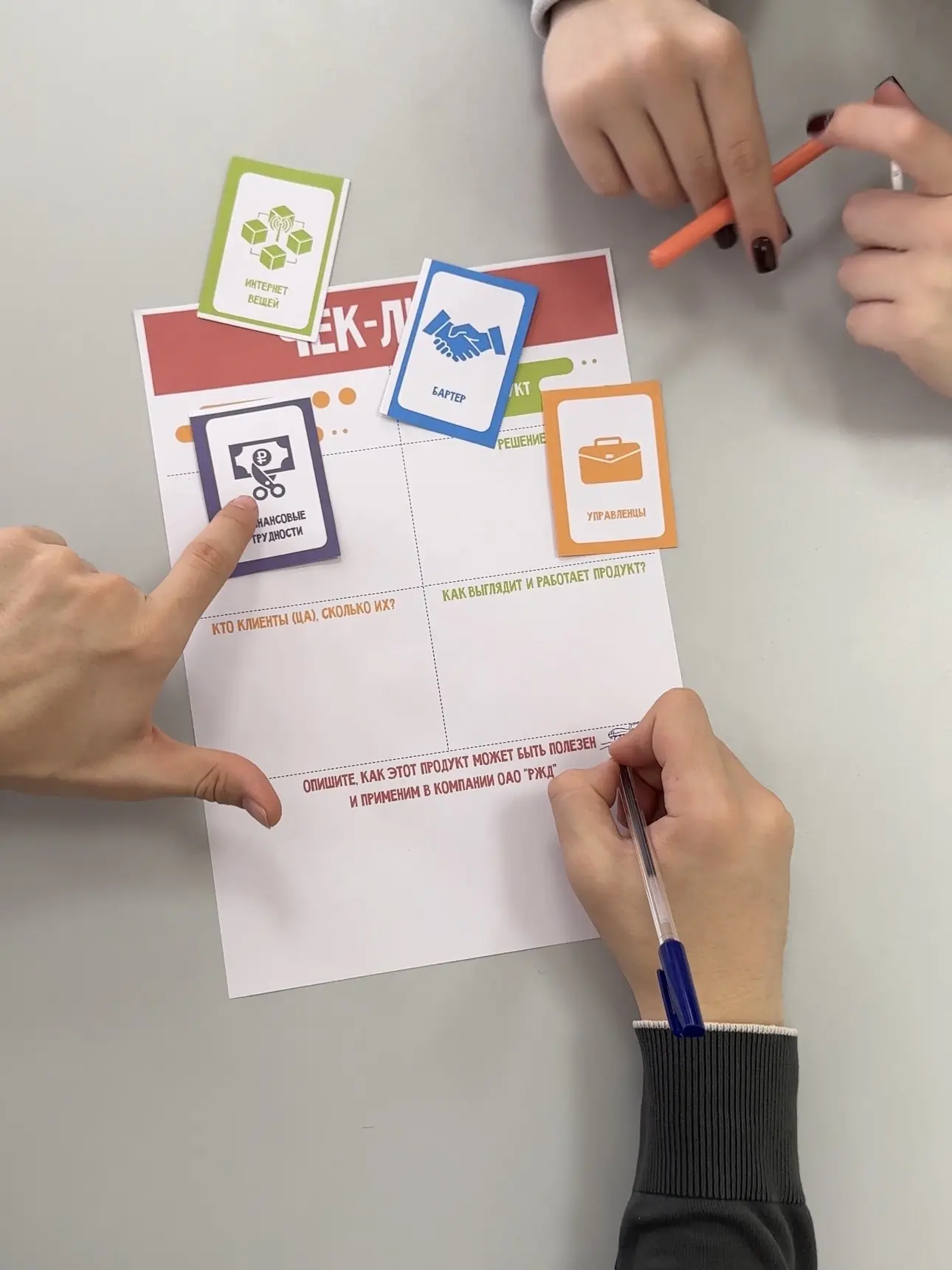 ☑️В ходе деловой игры ребята на основе случайного выбора условий решали непростые проблемные ситуации методом мозгового штурма, учитывая целевую аудиторию, данную технологию и дополнительные условия. Команды смогли оформить свои идеи и доказать возможное их применение в деятельности ОАО "РЖД"!