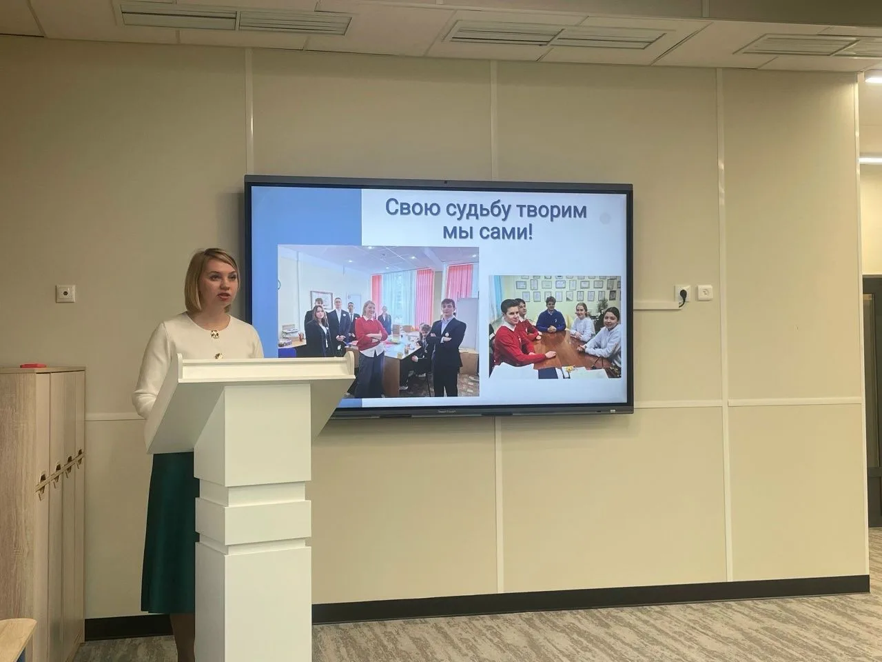 Особое внимание в докладе было уделено практическим результатам работы: успешной реализации проектов, развитию коммуникативных и управленческих навыков у обучающихся, а также формированию сплочённого ученического коллектива.