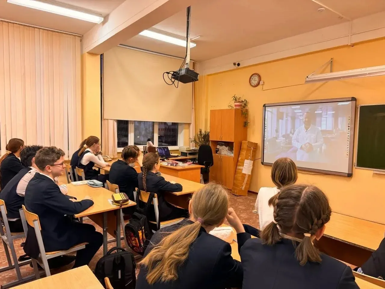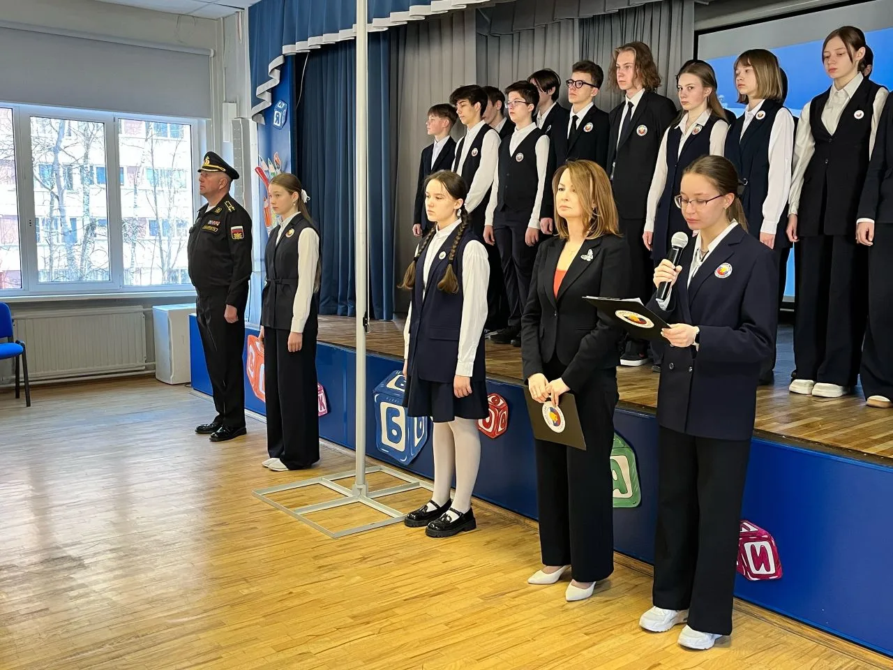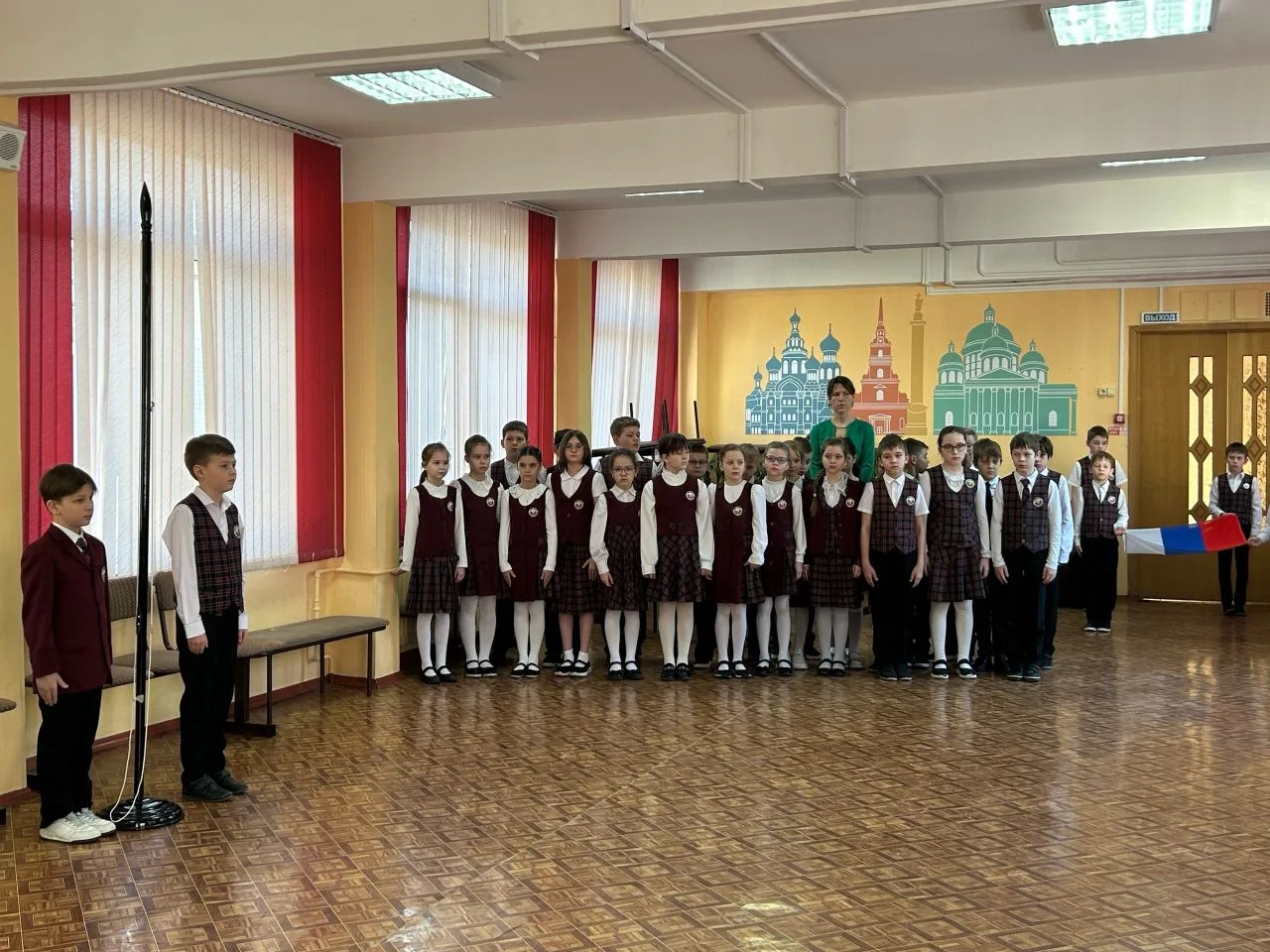 🗣️ После поднятия флага и исполнения гимна России учащиеся посетили занятие, посвящённое истории и современному состоянию космической отрасли России. В ходе занятия было отмечено значение труда специалистов и преемственность поколений в развитии отрасли. В результате у обучающихся сформировалось общее представление о космической сфере, уважение к её представителям и повысилась мотивация к изучению естественно-научных дисциплин и выбору технических профессий.
