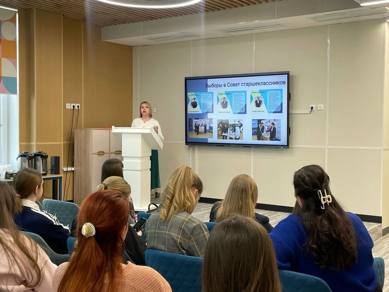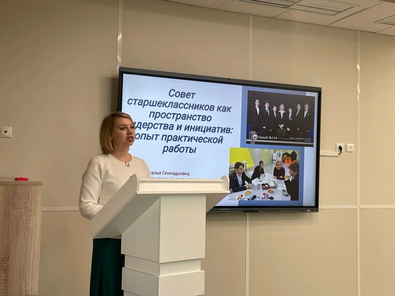 В рамках своего выступления Наталья Геннадьевна подробно представила систему работы с Советом старшеклассников в лицее, подчеркнув его роль как важного инструмента развития ученического самоуправления, формирования лидерских качеств и социальной активности обучающихся. Были освещены ключевые направления деятельности Совета, формы вовлечения школьников в организацию и проведение значимых мероприятий, а также механизмы поддержки детских инициатив.
