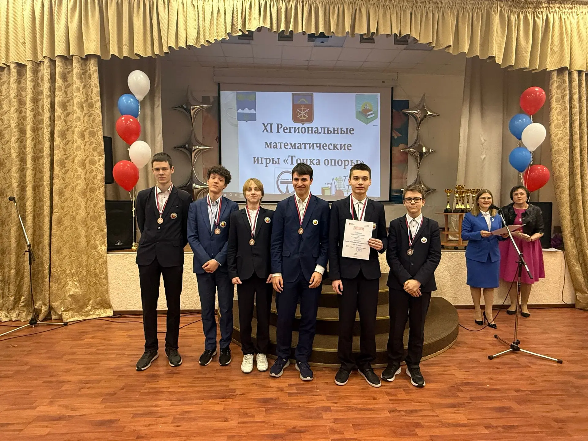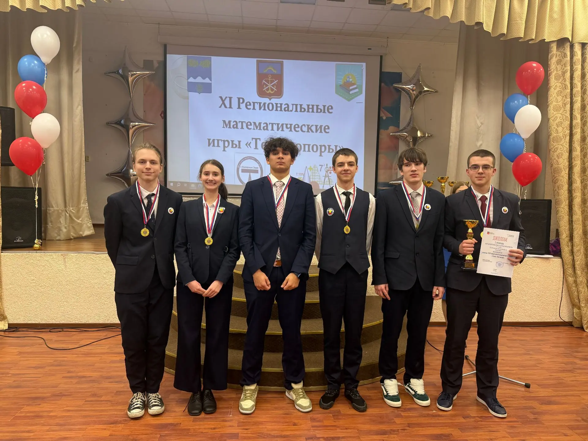 21 марта в Гимназии №1 г. Полярные Зори состоялись XI Региональные математические игры "Точка опоры", в которых приняли участие команды школ из Полярных Зорь, Апатит, Ковдора, Кировска, Оленегорска и Санкт-Петербурга. Команда лицея младшей лиги (8-9 класс) в составе Братищев Кирилл (8А), Сергеев Артём (8А), Токарев Матвей (8А), Кураков Константин (9А), Ковалёв Александр (9А) и Галицкий Михаил (9А) заняла 1 место в игре "Колесо Фортуны" и 3 место в игре "Домино". Команда старшей лиги в составе Ильинский Сергей (11А), Новгородцев Борис (11А), Родионова Лилия (11А), Лохов Степан (10Б), Куликов Андрей (10Б) и