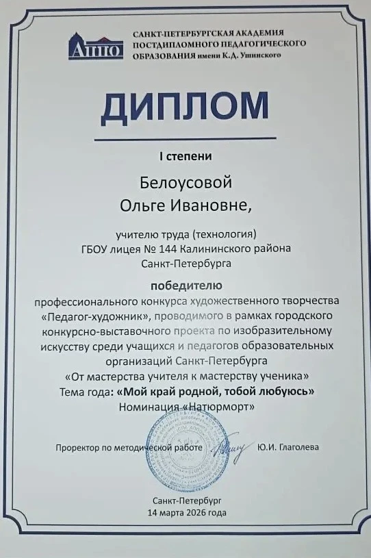 Выражаем благодарность её наставнику, педагогу Белоусовой Ольге Ивановне, за качественную подготовку юного таланта!