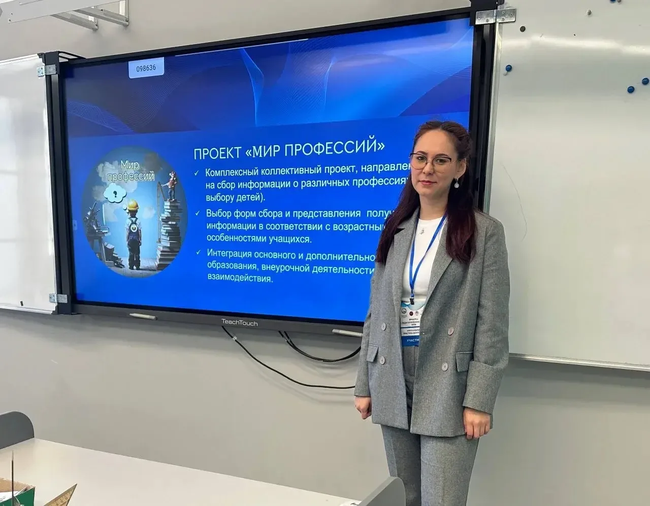 Александрова Кристина Дмитриевна, учитель начальных классов, представила проект «Мир профессий», направленный на раннюю профориентацию младших школьников. Она подробно описала, как сотрудничество учеников, родителей и педагогов помогает детям познакомиться с многообразием специальностей. Проект «Мир профессий» выходит за рамки традиционных классных часов, предлагая цикл интерактивных форматов. Учащиеся вовлекаются в мини-мастерские, берут интервью у родителей-специалистов, примеряют на себя профессиональные роли в деловых играх и посещают экскурсии. Основная цель — продемонстрировать связь школьных предметов с реальной жизнью, развить коммуникативные навыки, умение работать в команде и познакомить детей с разнообразием профессий.