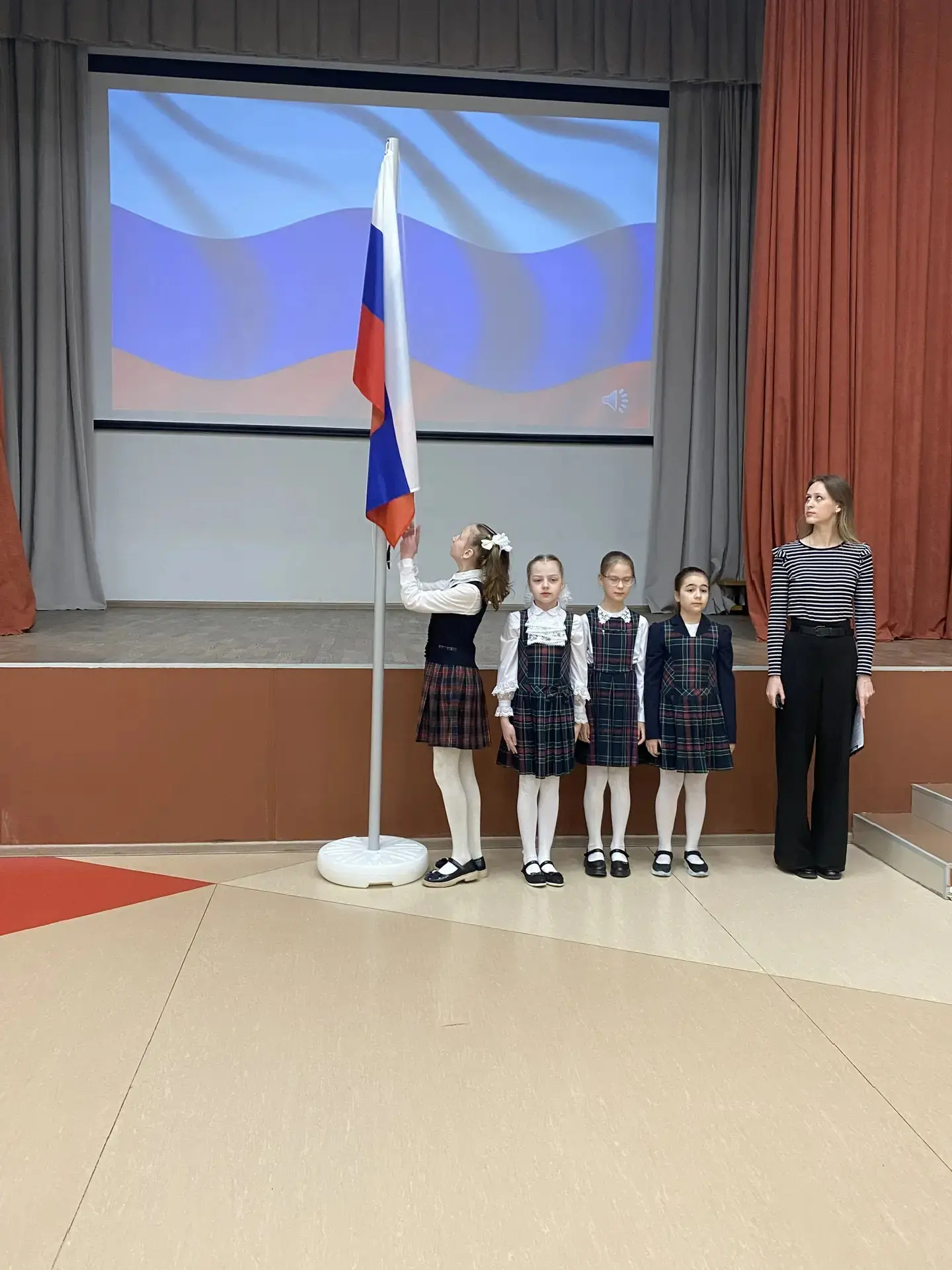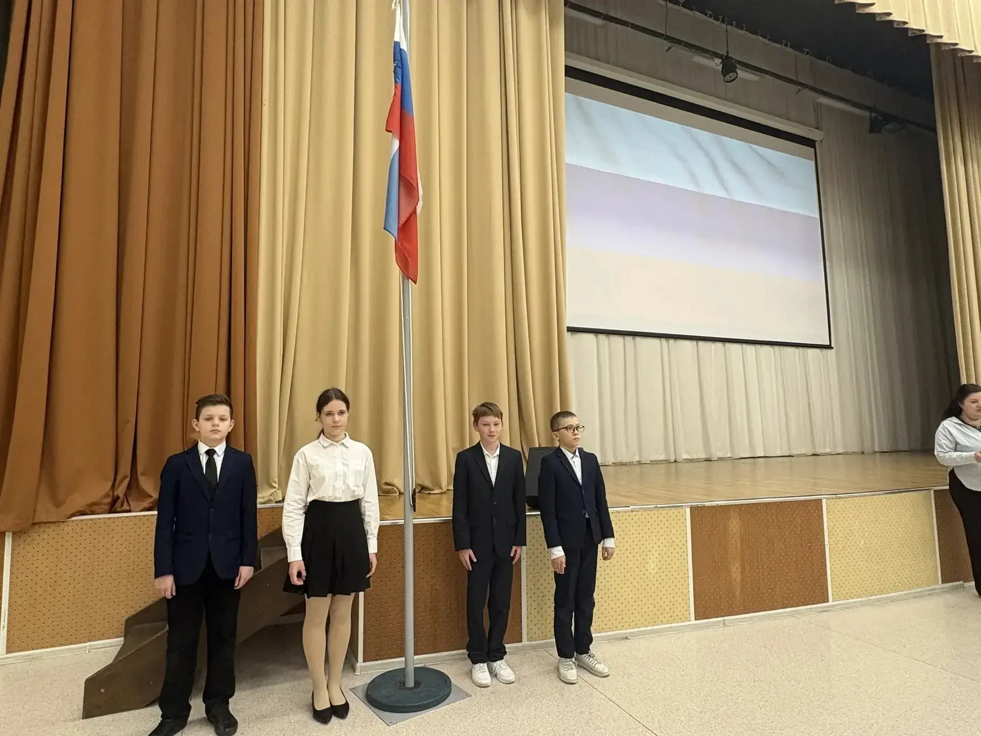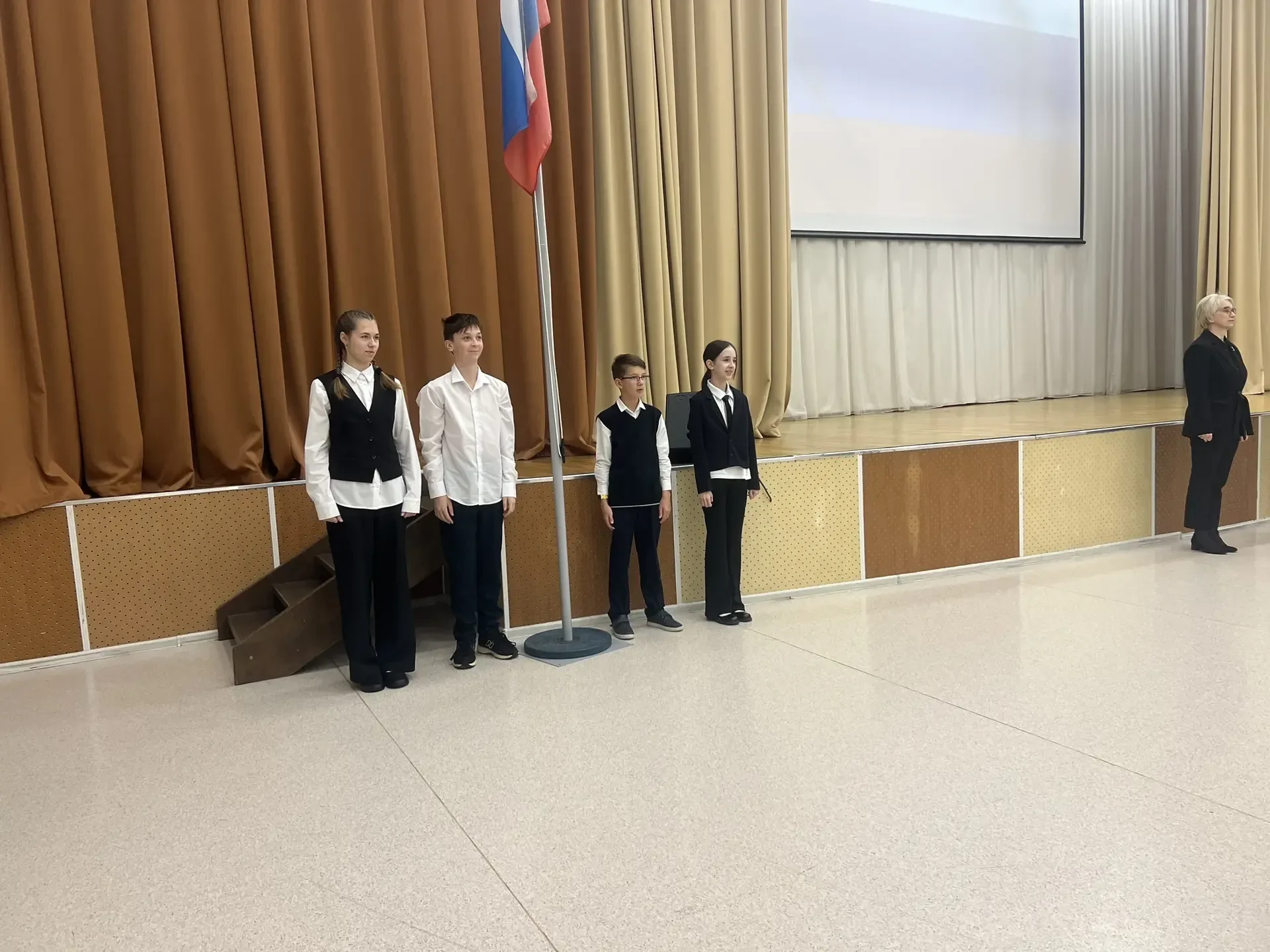 ✅На Площадке №1 право участия в церемонии было предоставлено ученикам 5Ж и 7Д классов. А в знаменную группу вошли лучшие ученики, показавшие успехи в учёбе, творчестве и общественной жизни школы: