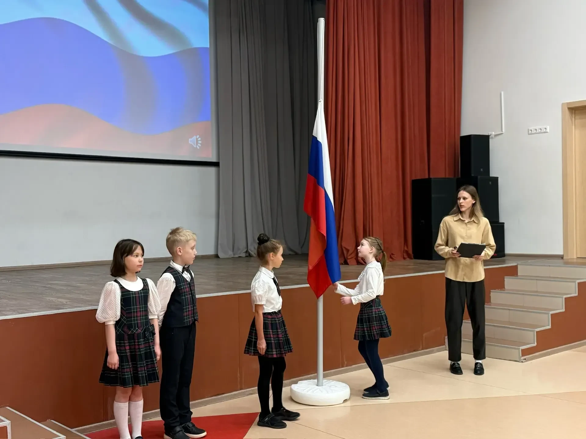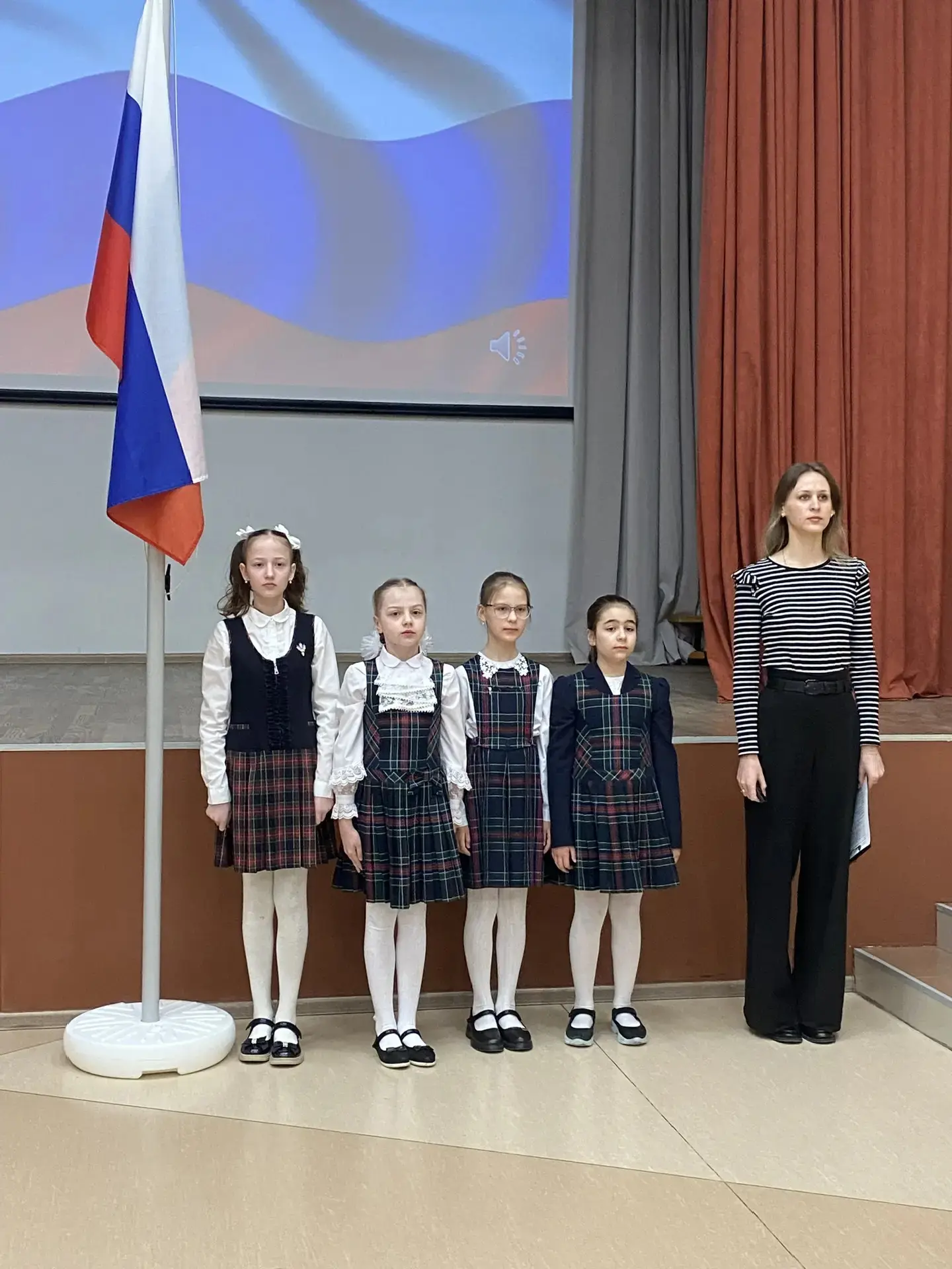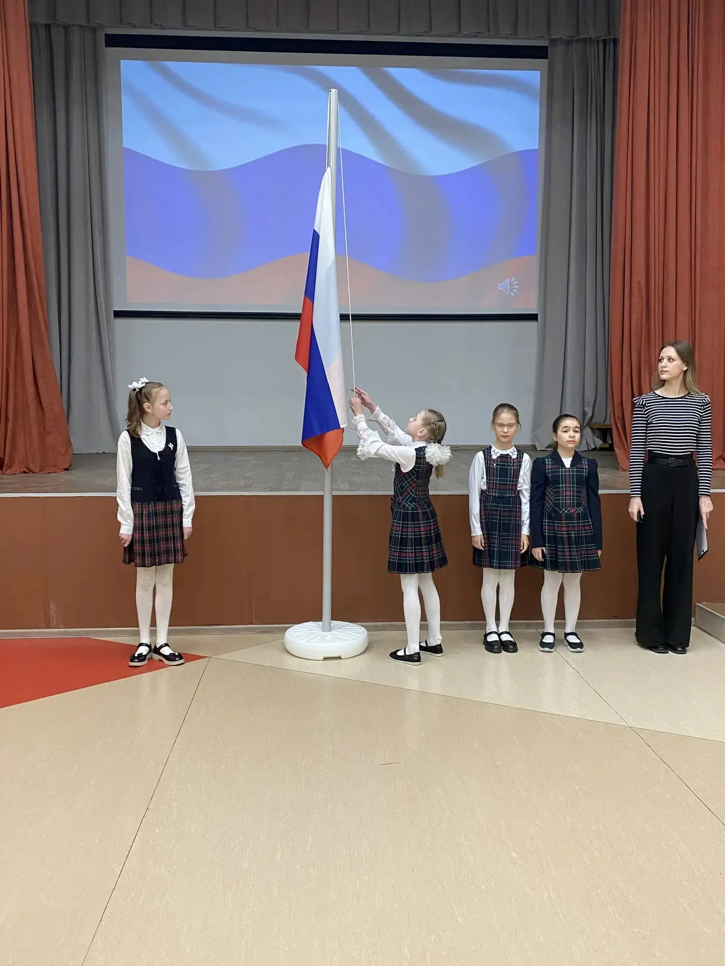 ✅На Площадке №1 право участия в церемонии было предоставлено ученикам 5Ж и 7Д классов. А в знаменную группу вошли лучшие ученики, показавшие успехи в учёбе, творчестве и общественной жизни школы: