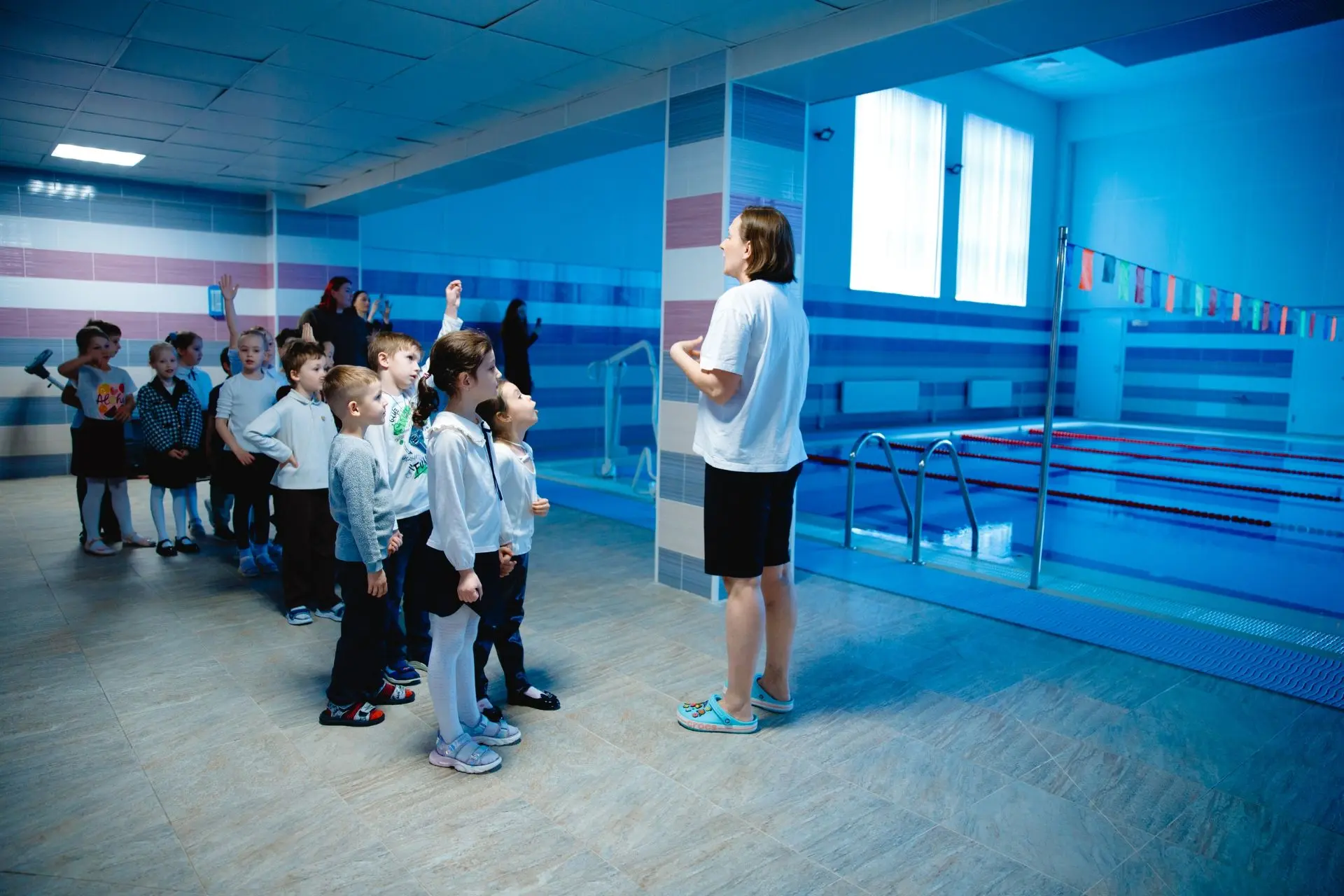 🏊 Бассейн, в который ребята отправятся на увлекательные занятия.