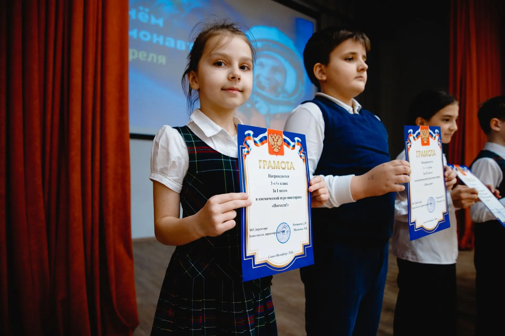 ⭐ Ученики 5Ж класса Тимофей Шуть и Мария Батырева — за выдающиеся успехи в освоении образовательной программы и значимые учебные достижения.