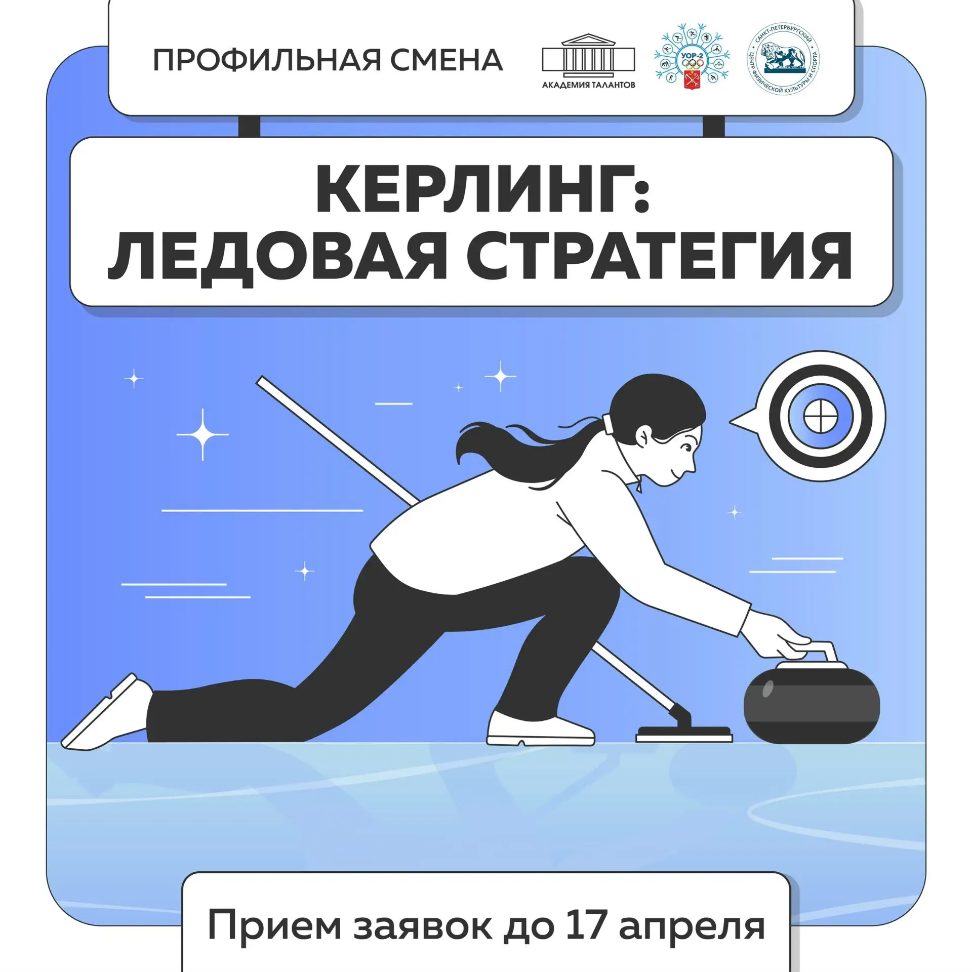 🔥Академия талантов совместно с Санкт-Петербургским центром физической культуры и спорта и Училищем олимпийского резерва №2 продолжают набор школьников 10-13 лет на профильную смену «Кёрлинг: ледовая стратегия».