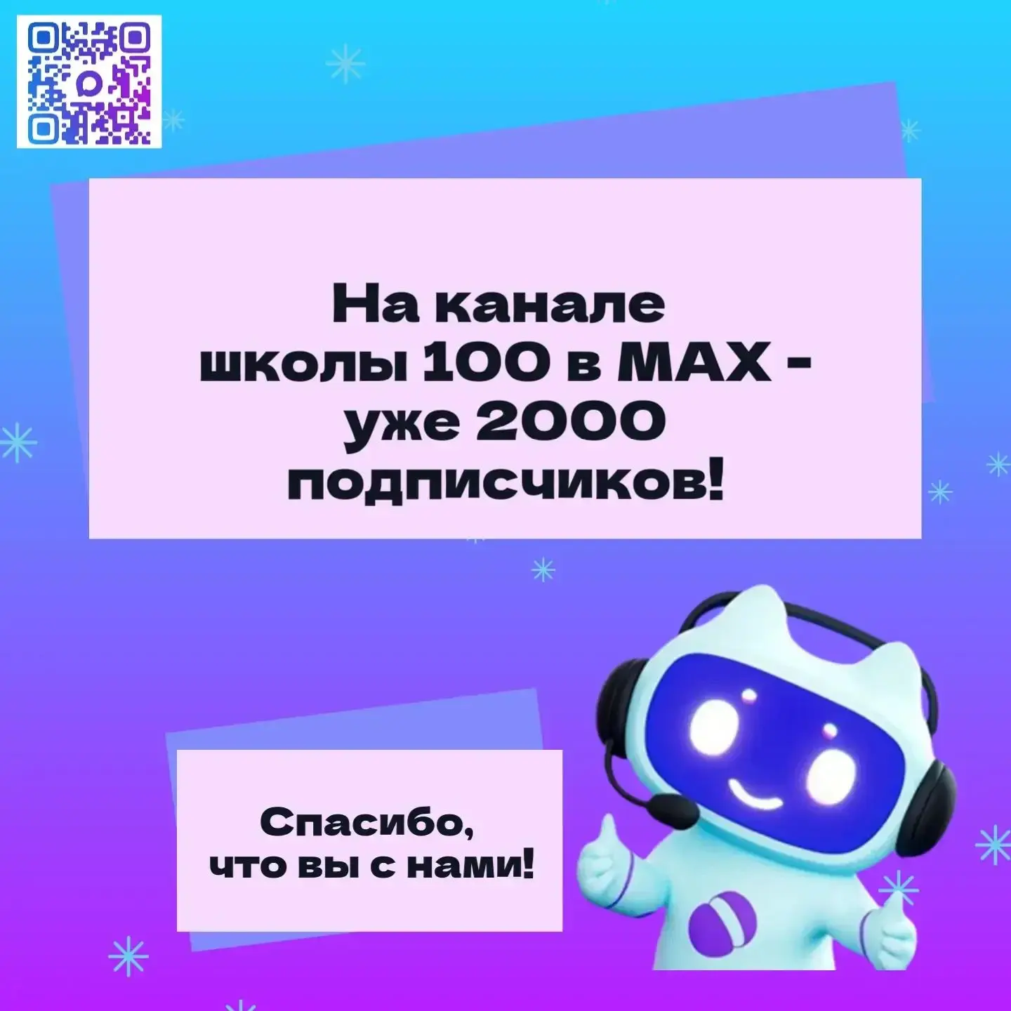 🎉Мы рады сообщить, что на канале нашей школы в национальном мессенджере MAX уже больше 2000 подписчиков! Огромное спасибо каждому из вас за поддержку и активное участие!