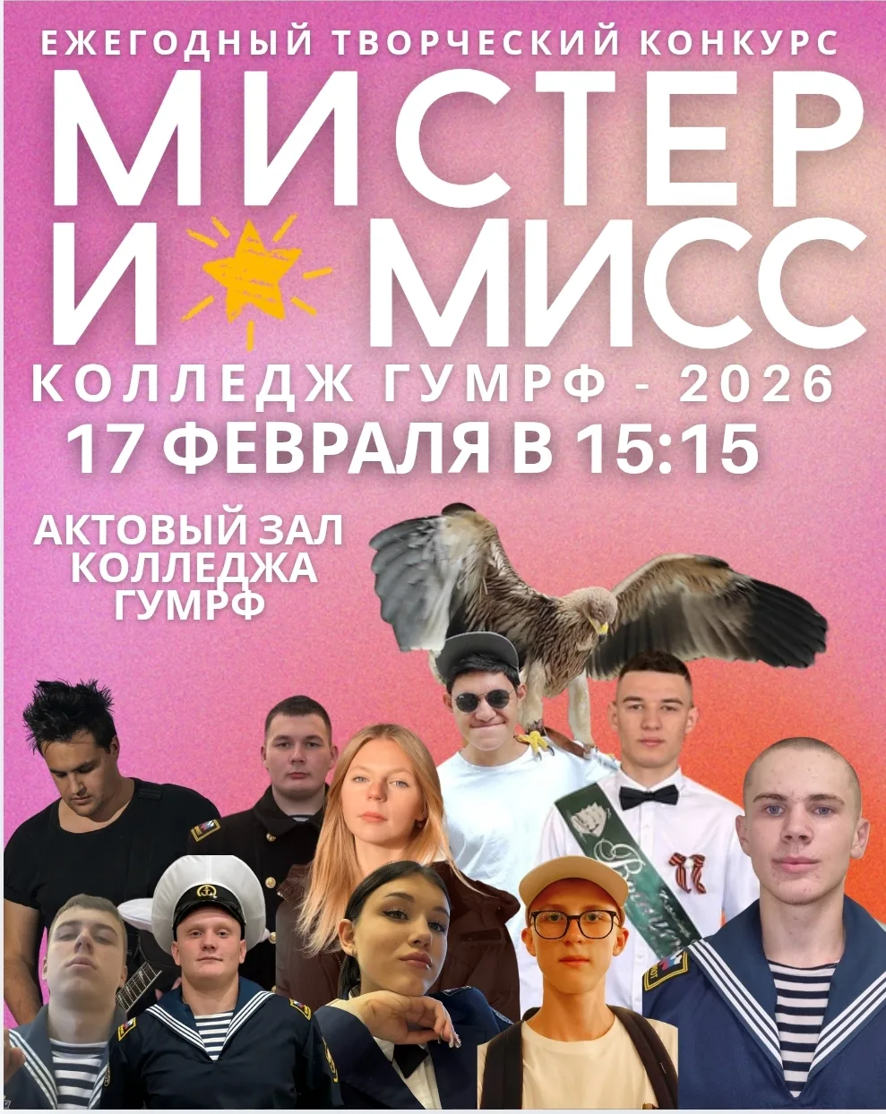 Уже ЗАВТРА в 15:30 в актовом зале Колледжа ГУМРФ состоится самое яркое событие этой зимы — ежегодный творческий конкурс «Мистер и Мисс Колледж ГУМРФ — 2026»!