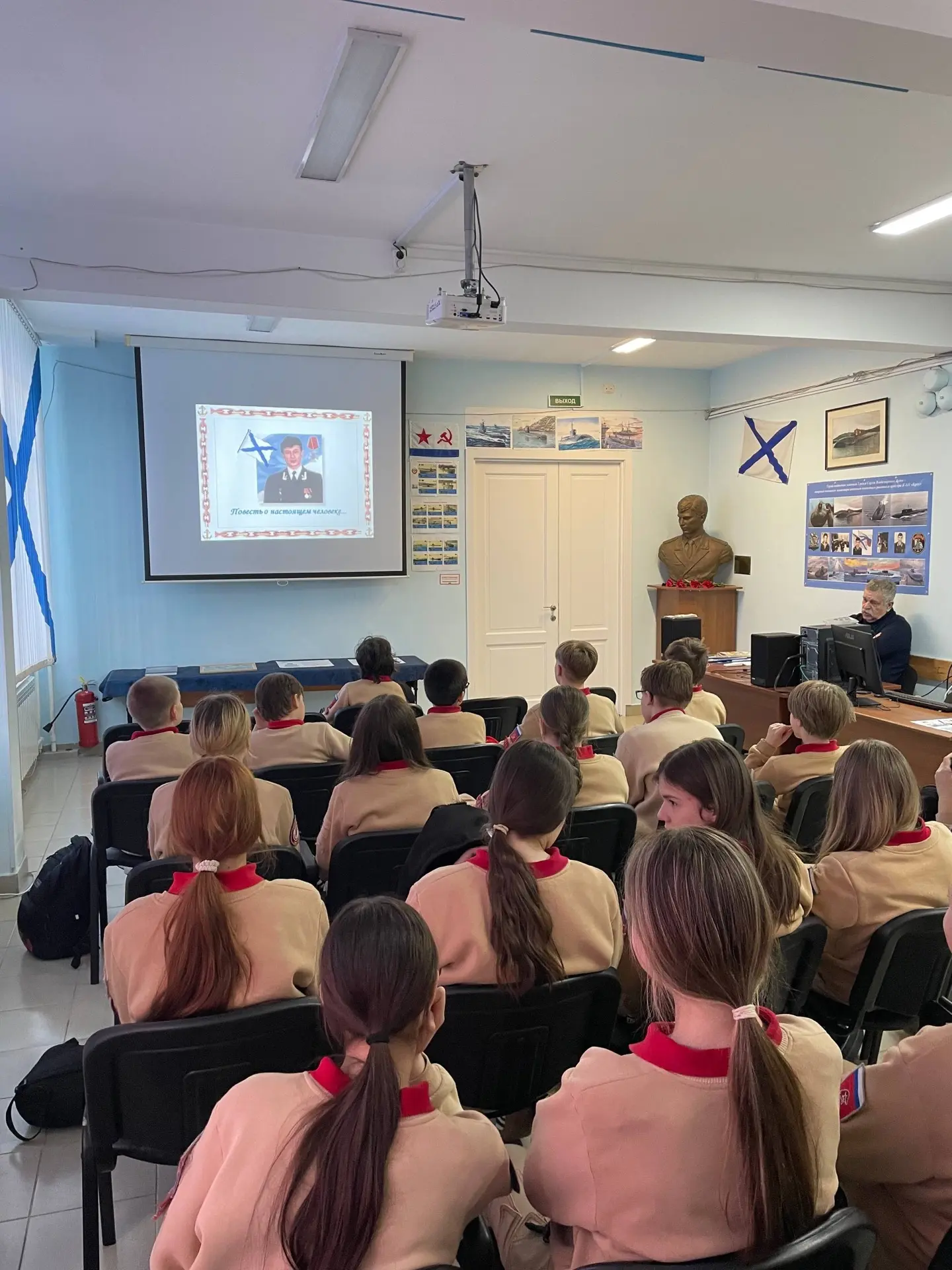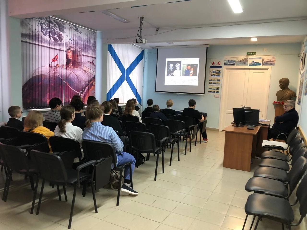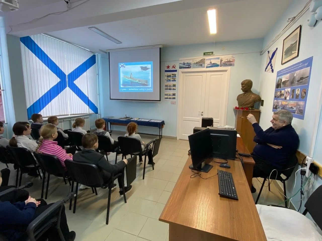Сегодня в лектории школьного музея состоялось первое занятие «Повесть о настоящем человеке» для учеников 4А и 5А классов. Ребята познакомились с биографией Сергея Владимировича, узнали о его школьных годах и доблестной службе на подводном флоте.