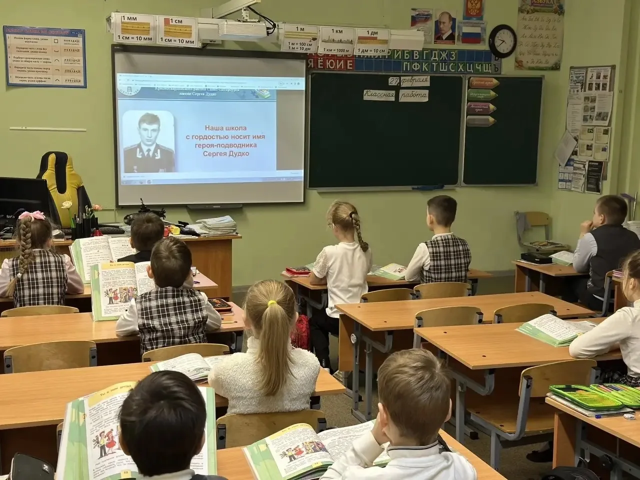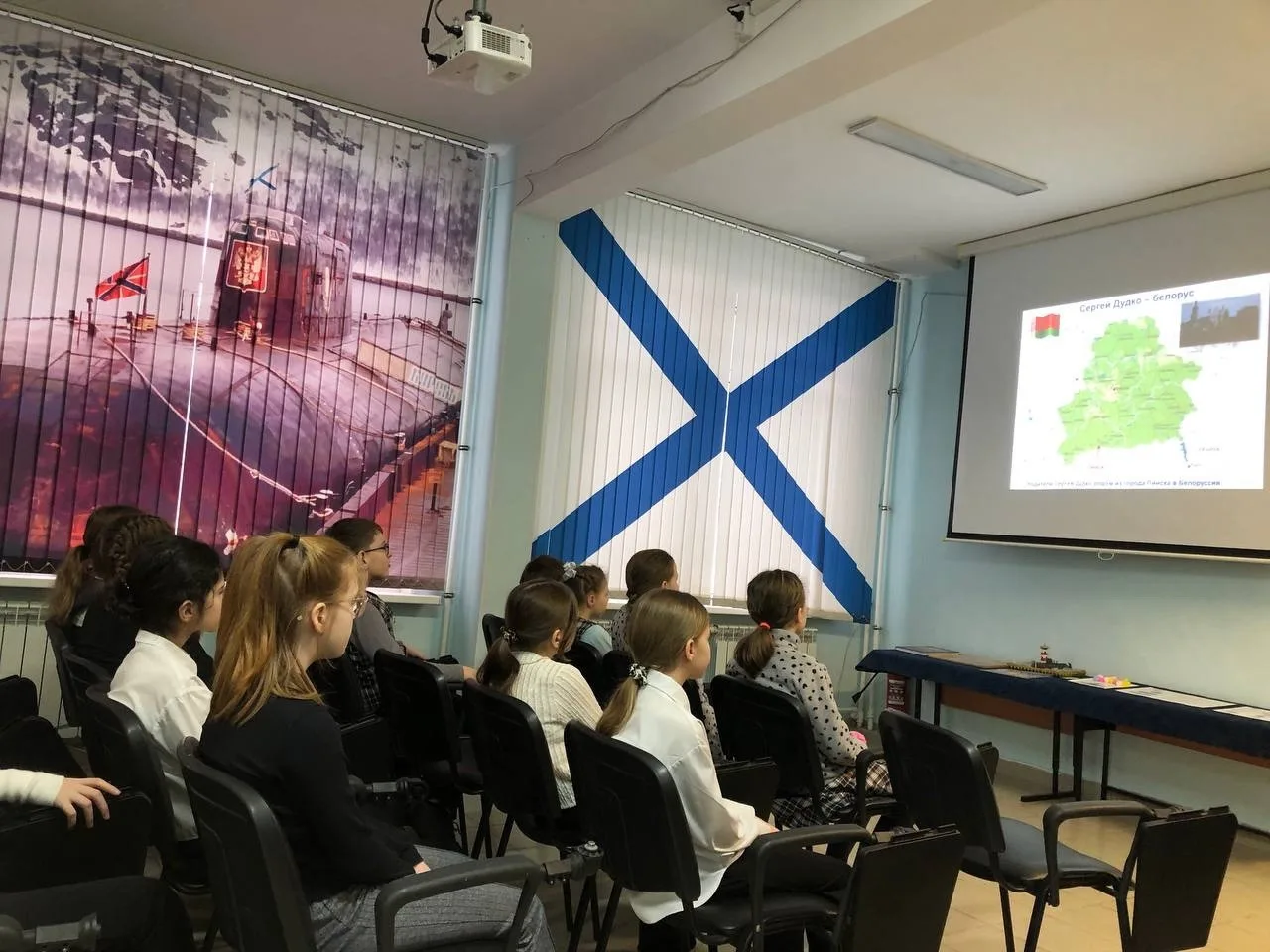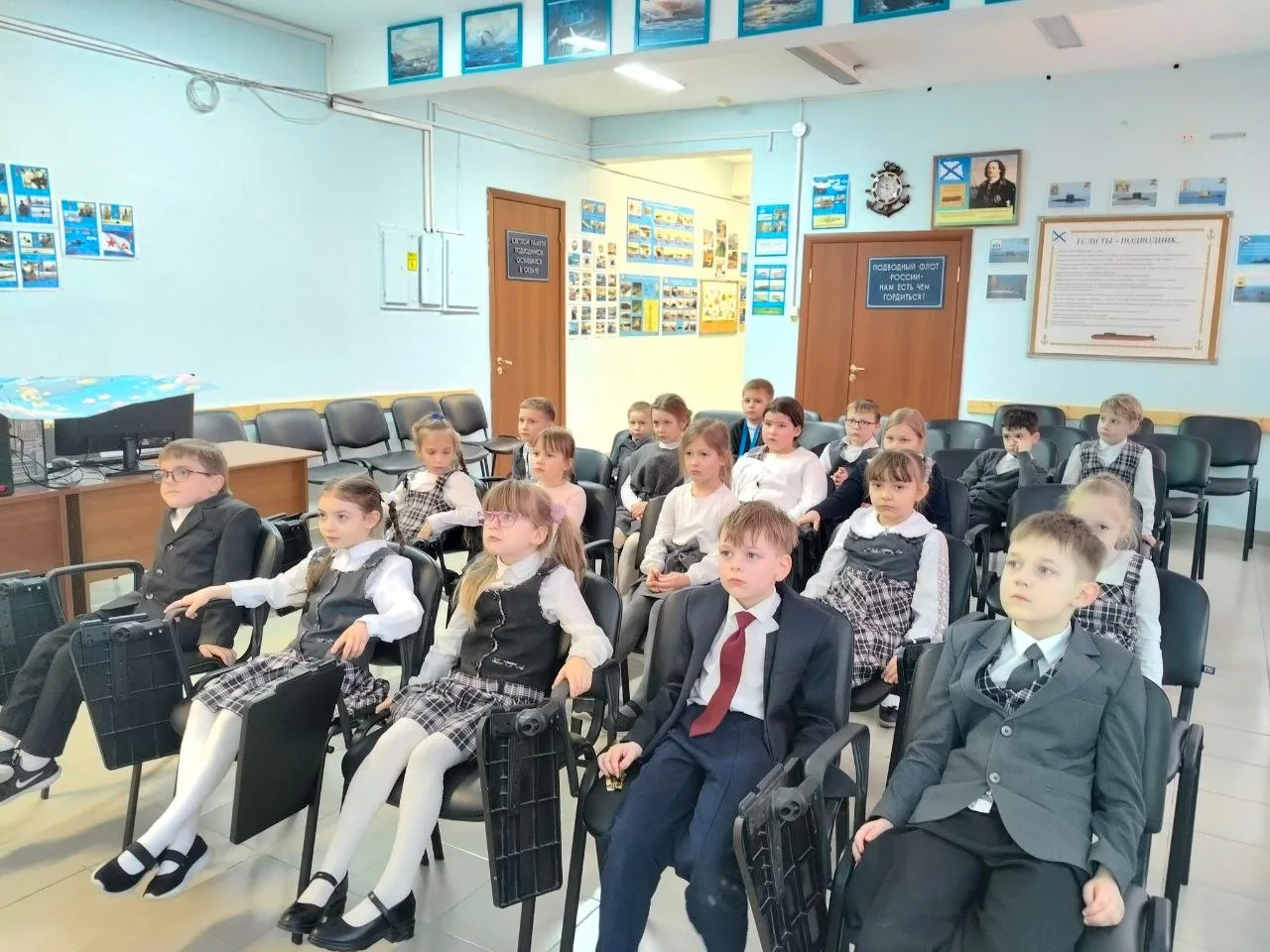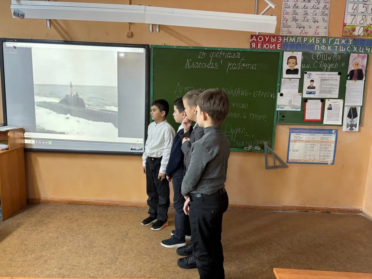 Сегодня в лектории школьного музея состоялось первое занятие «Повесть о настоящем человеке» для учеников 4А и 5А классов. Ребята познакомились с биографией Сергея Владимировича, узнали о его школьных годах и доблестной службе на подводном флоте.