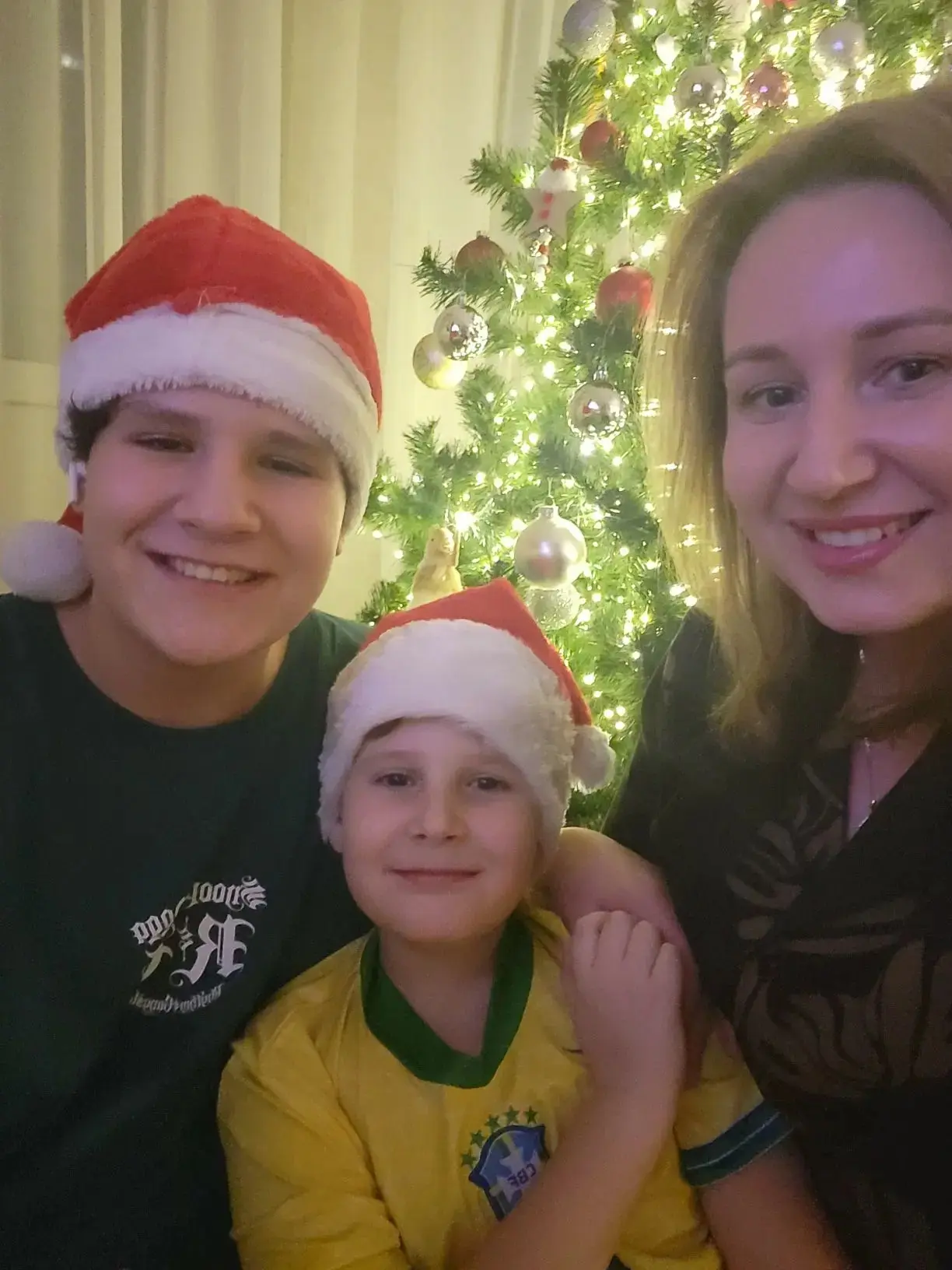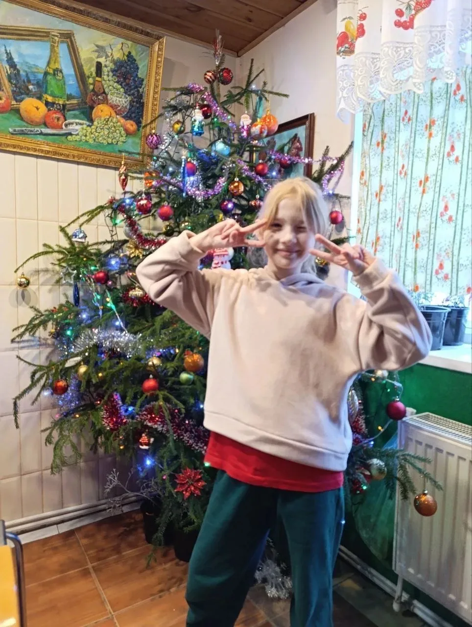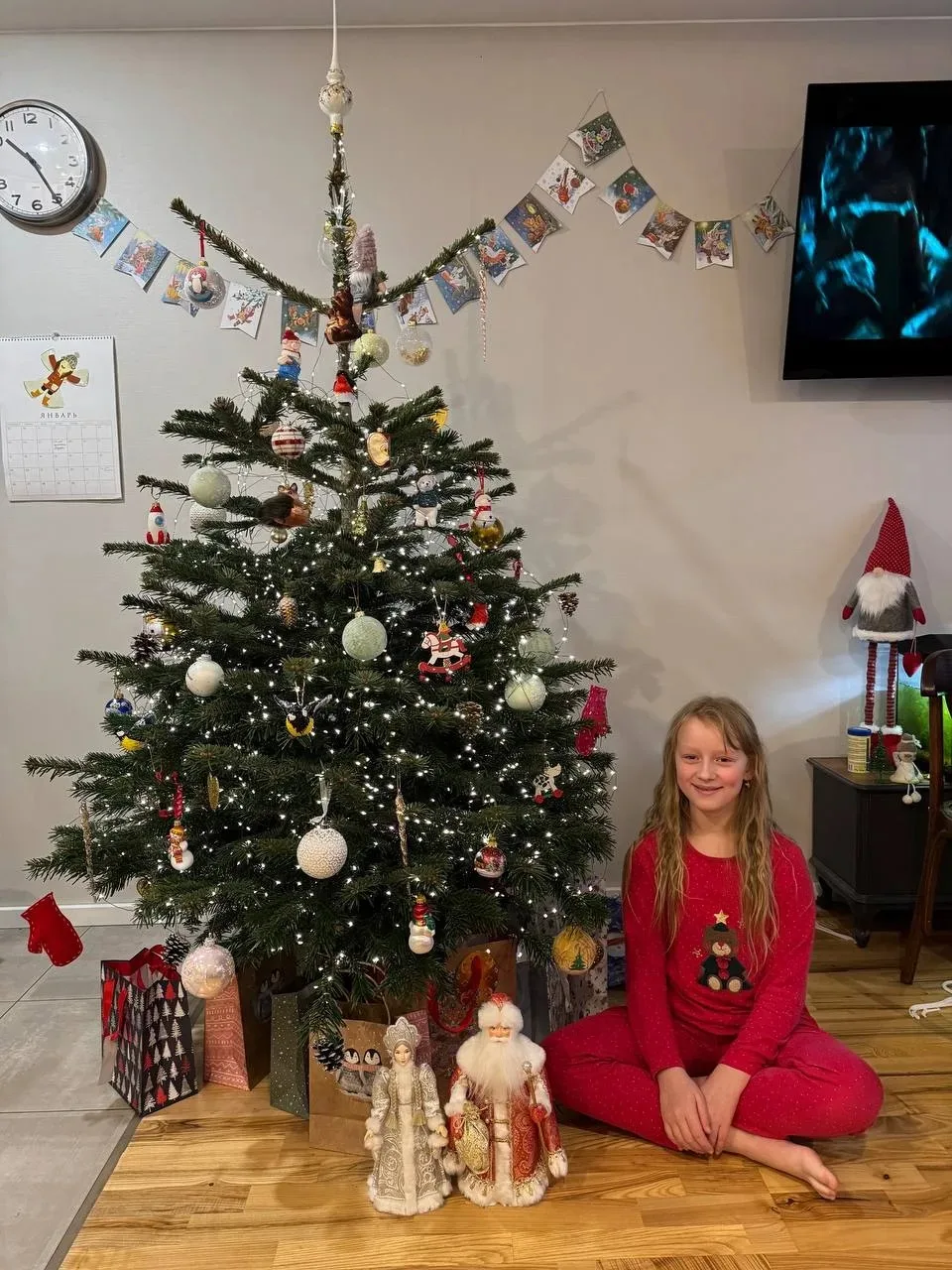 В этом году тот редкий раз, когда мы встречали Новый год дома. Папа принес самую красивую елку! К нам пришли братья, бабушки и дедушка. Мы вместе пели гимн, было весело, вкусно, и я просто потерялась в подарках!