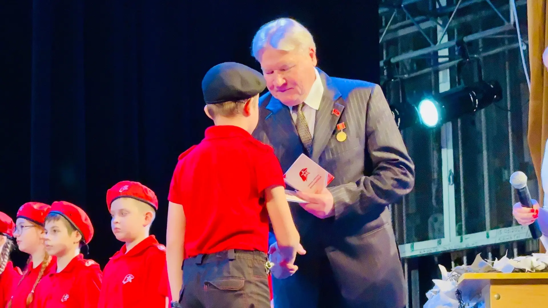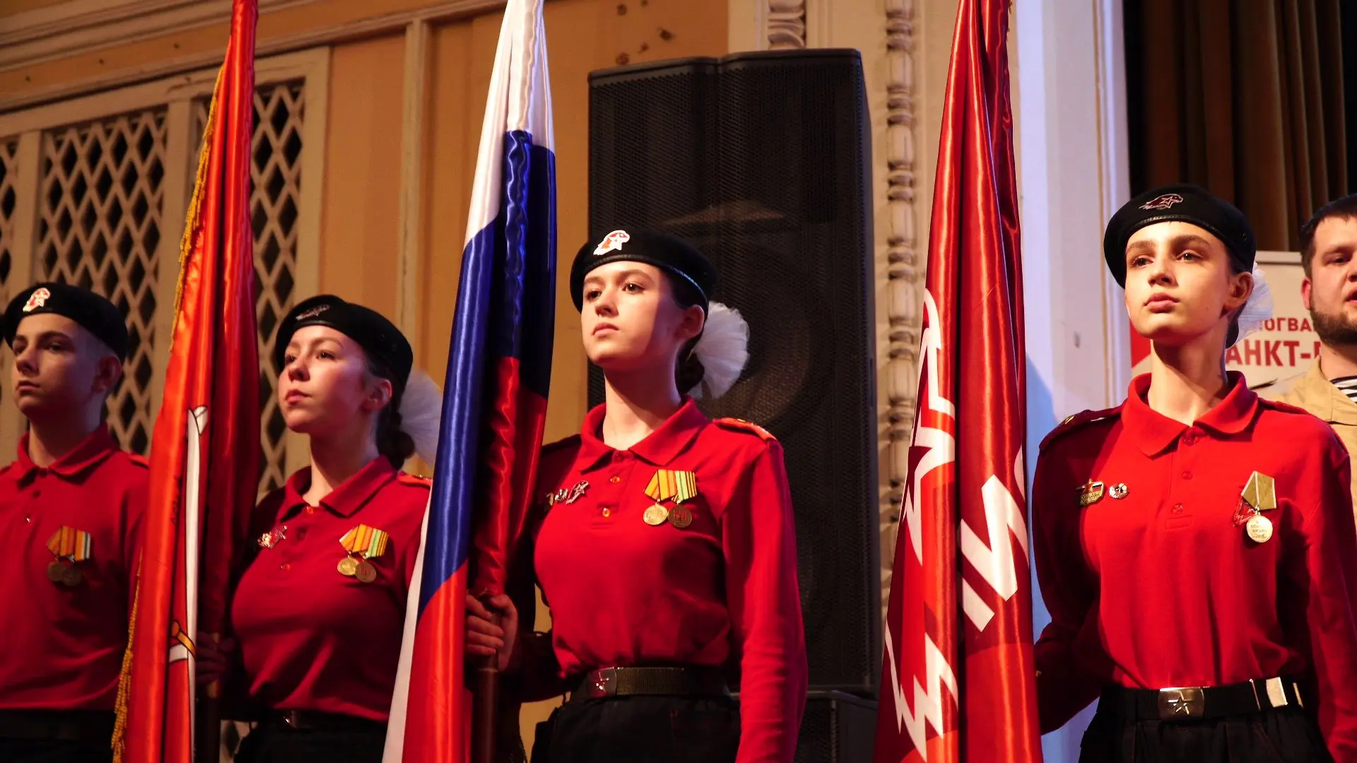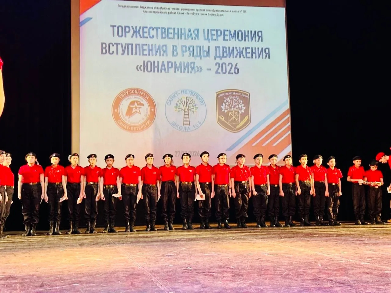 Торжественная церемония прошла в Доме офицеров Ленинградского военного округа. Юнармейские знаки получили учащиеся школ №134 и №349.