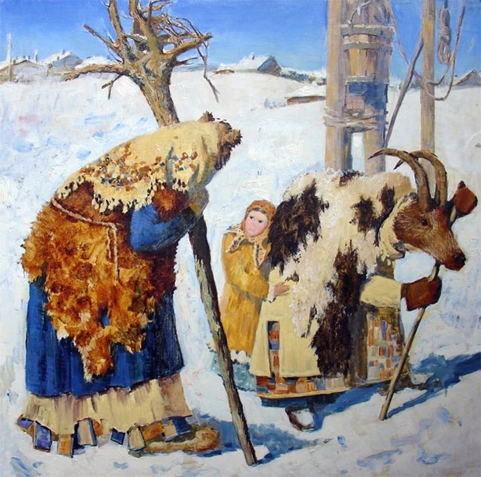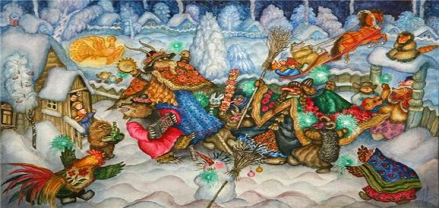На Руси в зимние вечера, когда совсем смеркнется, по домам ходила Коляда — в вывороченной шубе, со звериной маской на лице, с ухватом или палкой ⛄