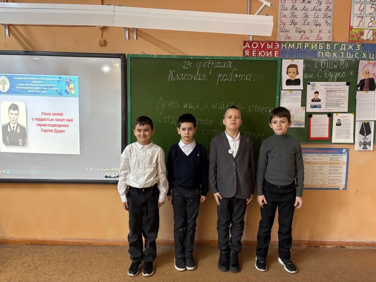 В этот особенный день мы с особым трепетом вспоминали Сергея Владимировича. Ребята внимательно смотрели биографический ролик о нём — и в их глазах читалась искренняя гордость.