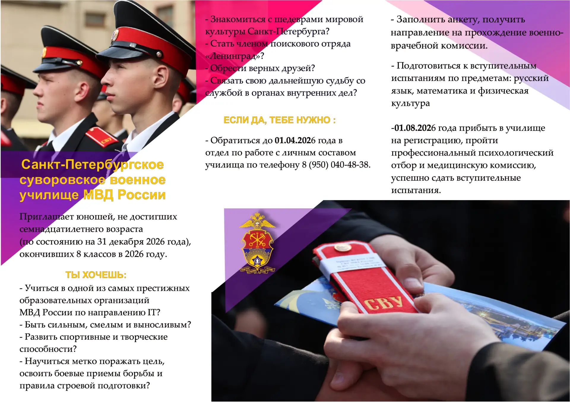 Подробнее в группе училища по ссылке: https://vk.com/spbsvymvd