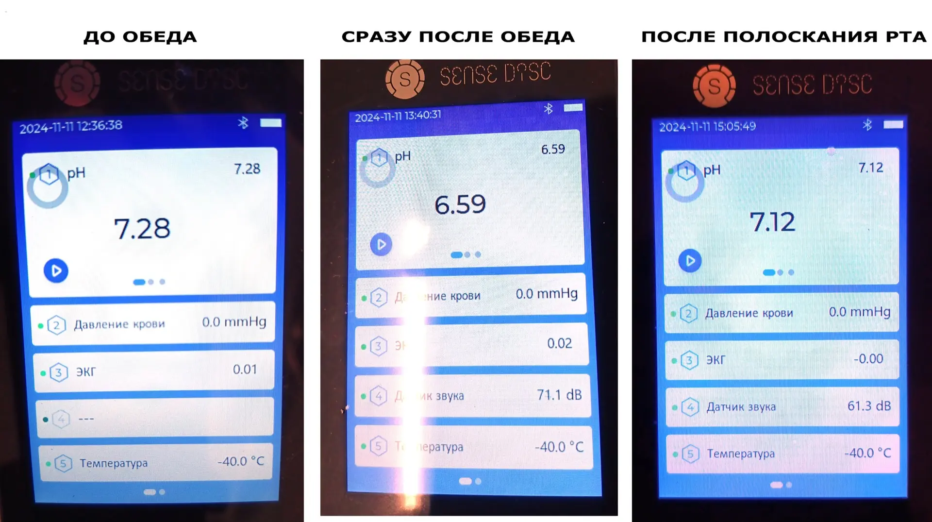 Сегодня исследовали изменение показателя кислотности слюны до обеда, сразу после обеда и после полоскания ротовой полости. К проекту привлекли кадетов нашей школы. Во время исследования ребята вновь подтвердили свою гипотезу: до обеда среда во рту слабощелочная, сразу после обеда становится слабокислой, а после полоскания возвращается к слабощелочным показателям.